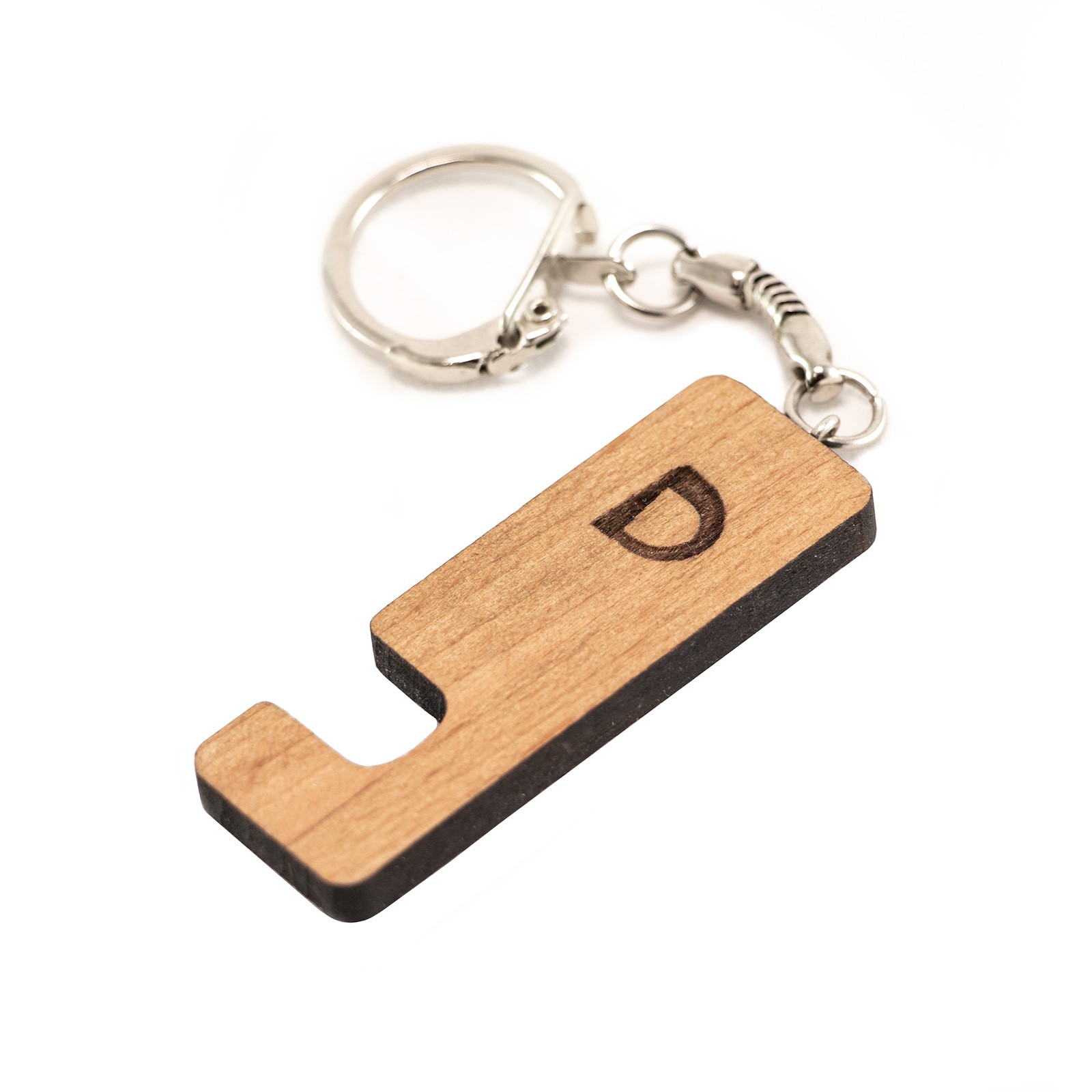 Брелок-подставка для телефона изготовлен из натурального дерева, а именно из бука. Толшина брелка составляет всего 0.5см, что позволяет комфортно хранить его вместе с ключами. Таким образом, у вас везде будет возможность поставить телефон на компактную мини-подставку. Любите необычные и прикольные вещи? Тогда порадуйте себя и близких, столь необычным исполнением подставки для телефона. После тщательной обработки конструкции, подставка проходит процедуру тончайшей лакировки, благодаря которой, лак практически незаметен, однако, увеличивается надежность, прочность и гладкость поверхности.