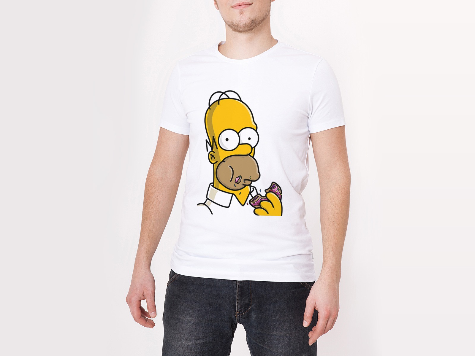 С прикольной футболкой окружающие обратят на вас больше внимания и как минимум улыбнуться ?Футболка «Гомер с пончиком» с коротким рукавом, прямого силуэта, удобно сидит как на мужском так и на женском теле. Внутрення сторона футболки состоит из 100% хлопка, снаружи волокна полиэстера. Данная футболка имеет абсолютную стойкость к стирке. Двойной шов придают футболке дополнительную прочность и препятствует деформации во время стирки. Так как внутренняя сторона изготовлена исключительно из 100% хлопка, футболка не вызывает аллергических реакций и дает возможность носить ее достаточно долгое время. Допускается стирка в ручном режиме.