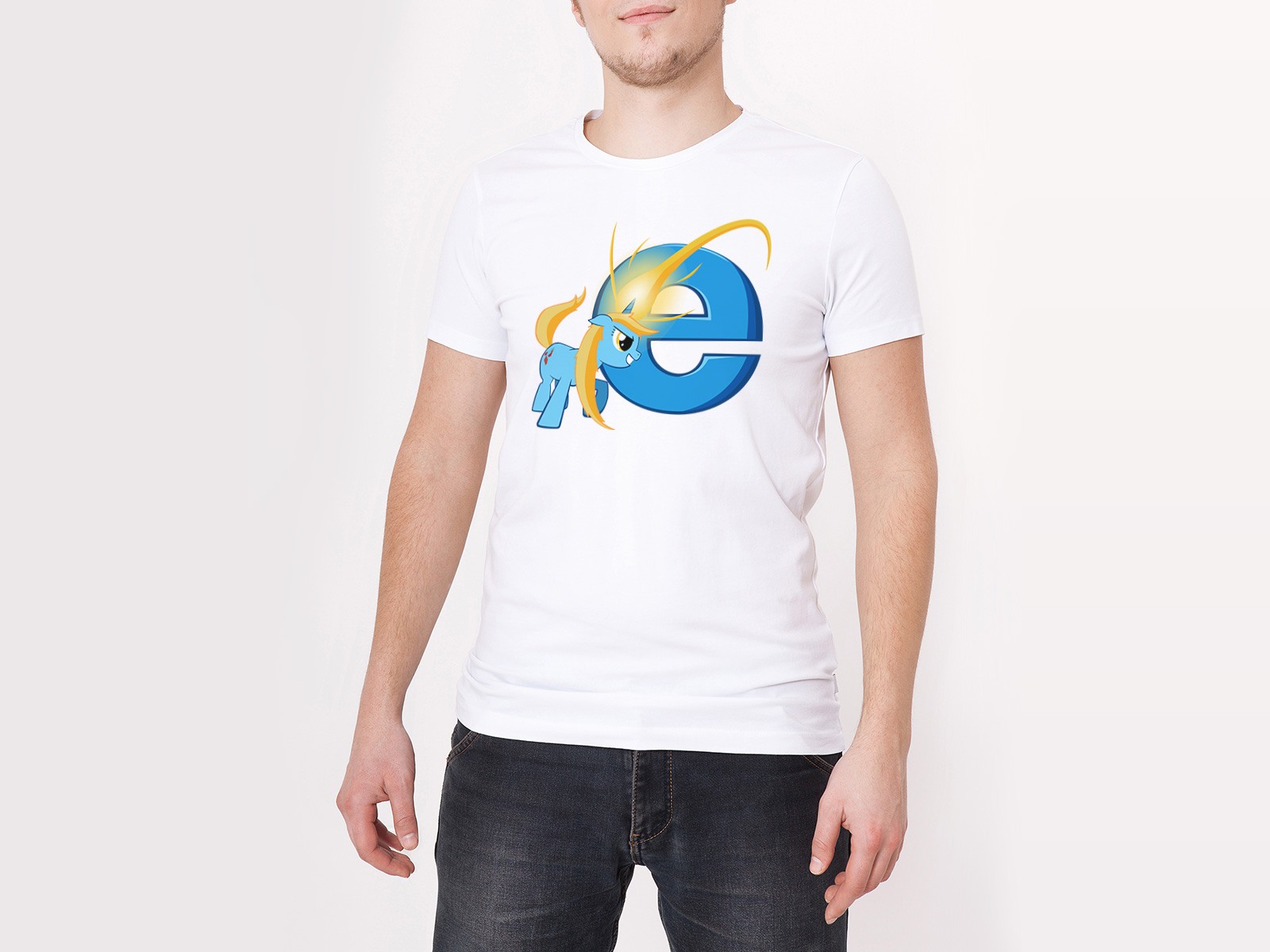 С прикольной футболкой окружающие обратят на вас больше внимания и как минимум улыбнуться ?Футболка «Internet Explorer и My Little Pony» с коротким рукавом, прямого силуэта, удобно сидит как на мужском так и на женском теле. Внутрення сторона футболки состоит из 100% хлопка, снаружи волокна полиэстера. Данная футболка имеет абсолютную стойкость к стирке. Двойной шов придают футболке дополнительную прочность и препятствует деформации во время стирки. Так как внутренняя сторона изготовлена исключительно из 100% хлопка, футболка не вызывает аллергических реакций и дает возможность носить ее достаточно долгое время. Допускается стирка в ручном режиме.