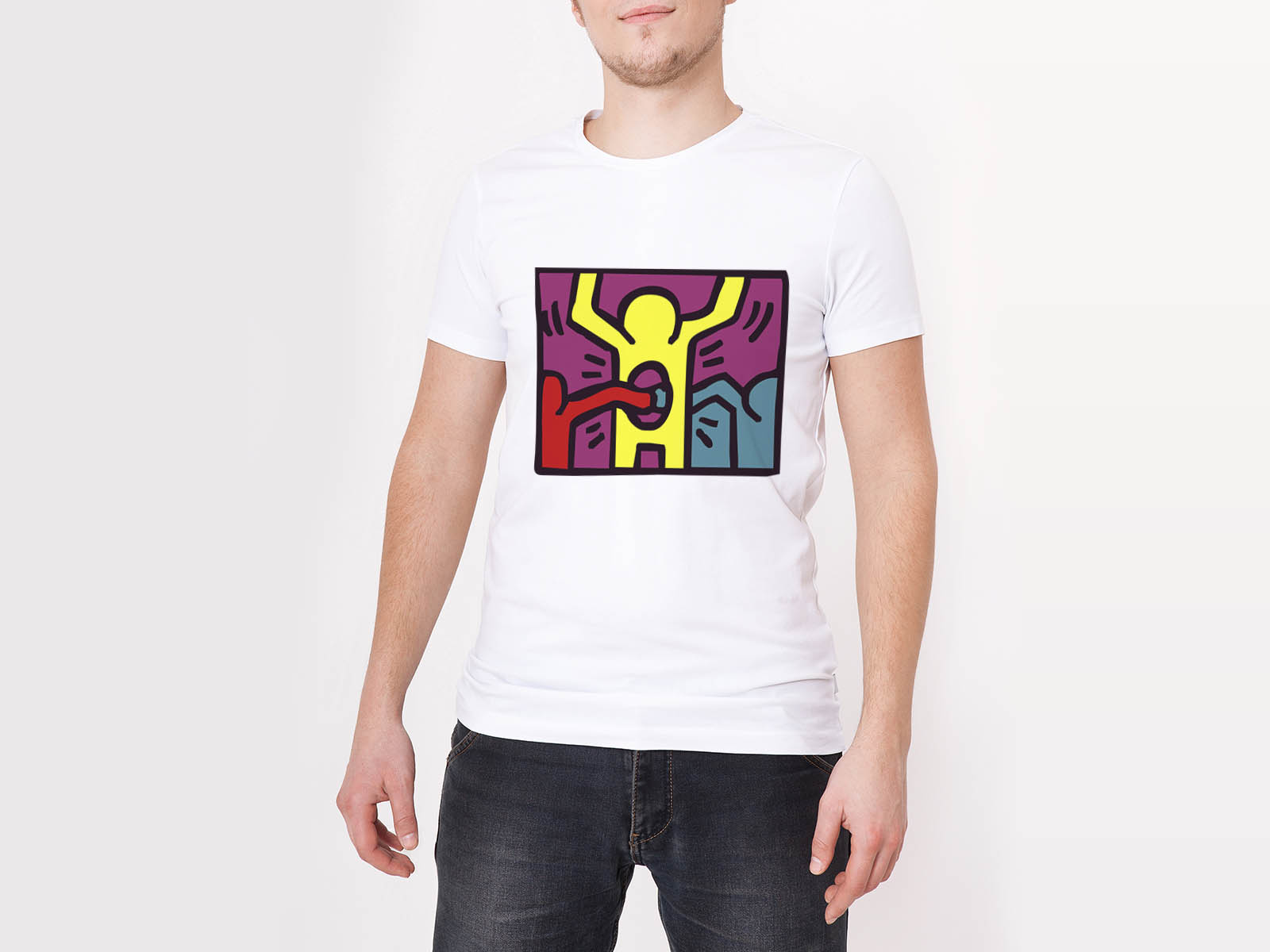 С прикольной футболкой окружающие обратят на вас больше внимания и как минимум улыбнуться ?Футболка «Keith Haring - Pop Shop #5» с коротким рукавом, прямого силуэта, удобно сидит как на мужском так и на женском теле. Внутрення сторона футболки состоит из 100% хлопка, снаружи волокна полиэстера. Данная футболка имеет абсолютную стойкость к стирке. Двойной шов придают футболке дополнительную прочность и препятствует деформации во время стирки. Так как внутренняя сторона изготовлена исключительно из 100% хлопка, футболка не вызывает аллергических реакций и дает возможность носить ее достаточно долгое время. Допускается стирка в ручном режиме.