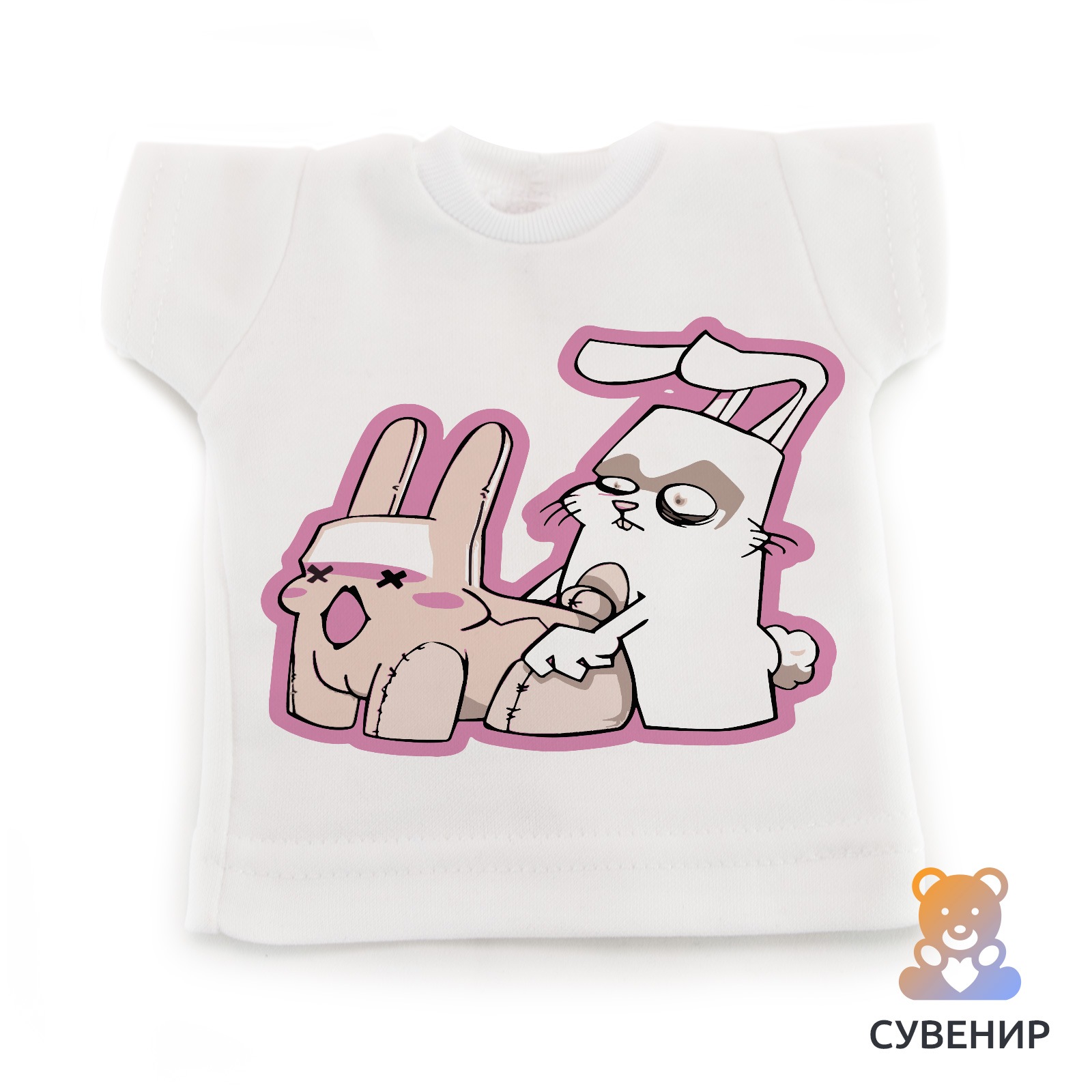 Сувенирная футболка это отличный подарок коллеге, другу или себе в машину ?Сувенирная футболка «Пошлые зайчики» подходит для подарка, украшает интерьер квартиры, машины и офиса. Благодаря своему маленькому размеру и прикольному дизайну, футболка однозначно привлекает внимание. Необычную мини - футболку можно использовать в разных целях. Кто-то вешает их на лобовом окне автомобиля, кто-то на стену дома или на холодильник, а кто-то надевает на своего любимого плюшевого друга. Удивите своих близких и друзей столь прикольным подарком. Мини - футболка выполнена из полиэстера или хлопка. Средние размеры футболки обычно достигают 17х18 см. Футболку также можно спокойно мыть, как в стиральной машине, так и вручную. Нанесенное изображение никак не пострадает от стирки.