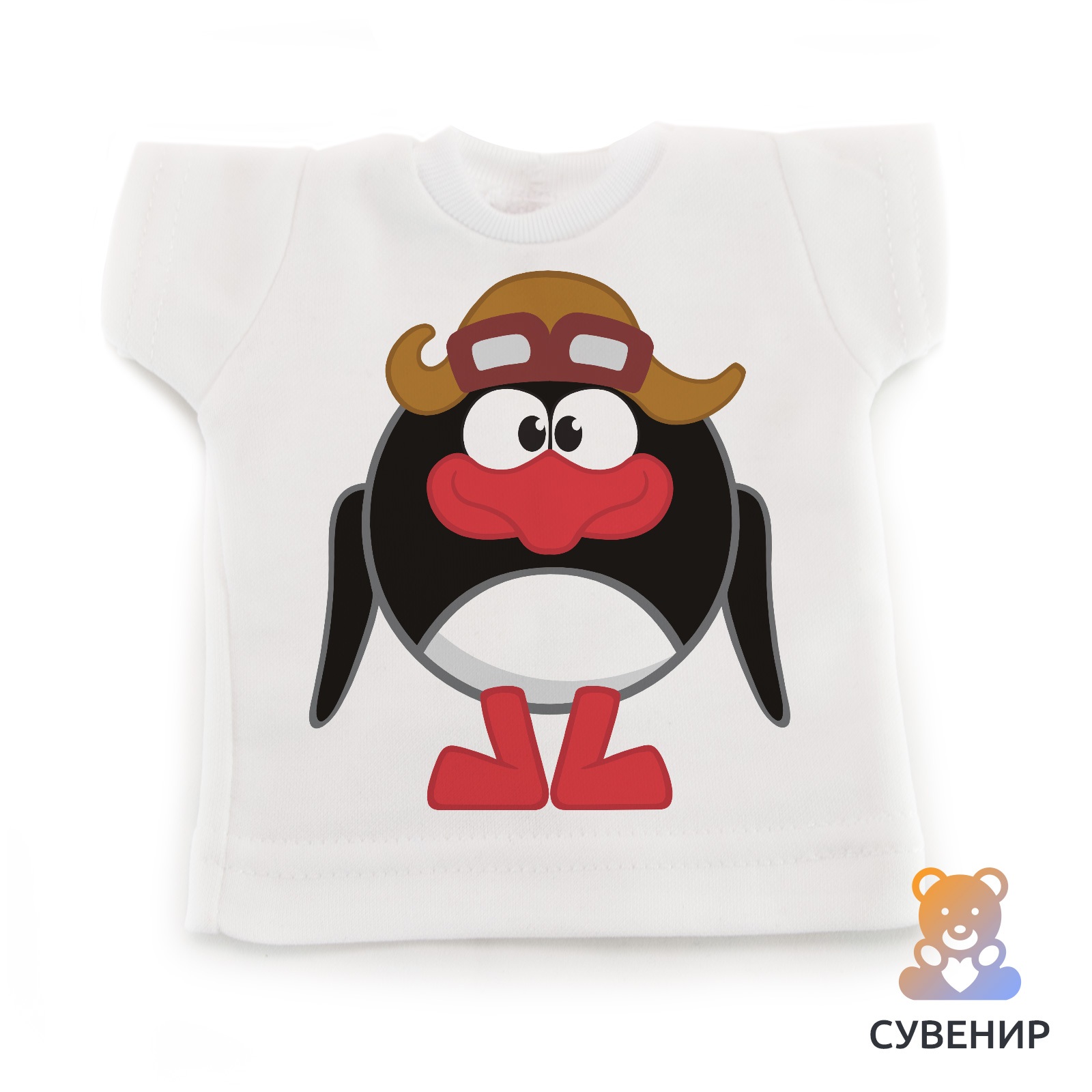 Сувенирная футболка это отличный подарок коллеге, другу или себе в машину ?Сувенирная футболка «Смешарики Пин» подходит для подарка, украшает интерьер квартиры, машины и офиса. Благодаря своему маленькому размеру и прикольному дизайну, футболка однозначно привлекает внимание. Необычную мини - футболку можно использовать в разных целях. Кто-то вешает их на лобовом окне автомобиля, кто-то на стену дома или на холодильник, а кто-то надевает на своего любимого плюшевого друга. Удивите своих близких и друзей столь прикольным подарком. Мини - футболка выполнена из полиэстера или хлопка. Средние размеры футболки обычно достигают 17х18 см. Футболку также можно спокойно мыть, как в стиральной машине, так и вручную. Нанесенное изображение никак не пострадает от стирки.