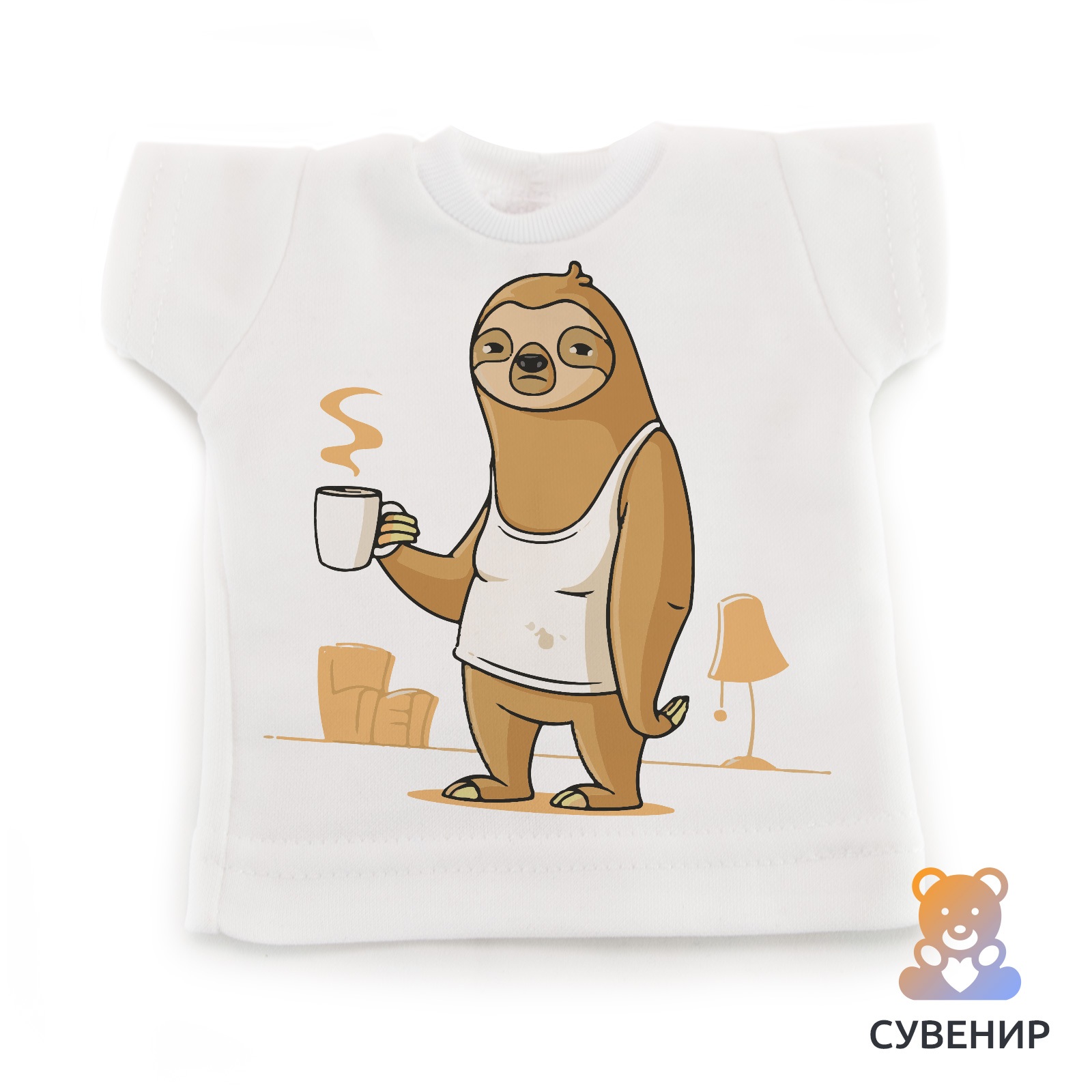 Сувенирная футболка это отличный подарок коллеге, другу или себе в машину ?Сувенирная футболка «Утро понедельника» подходит для подарка, украшает интерьер квартиры, машины и офиса. Благодаря своему маленькому размеру и прикольному дизайну, футболка однозначно привлекает внимание. Необычную мини - футболку можно использовать в разных целях. Кто-то вешает их на лобовом окне автомобиля, кто-то на стену дома или на холодильник, а кто-то надевает на своего любимого плюшевого друга. Удивите своих близких и друзей столь прикольным подарком. Мини - футболка выполнена из полиэстера или хлопка. Средние размеры футболки обычно достигают 17х18 см. Футболку также можно спокойно мыть, как в стиральной машине, так и вручную. Нанесенное изображение никак не пострадает от стирки.