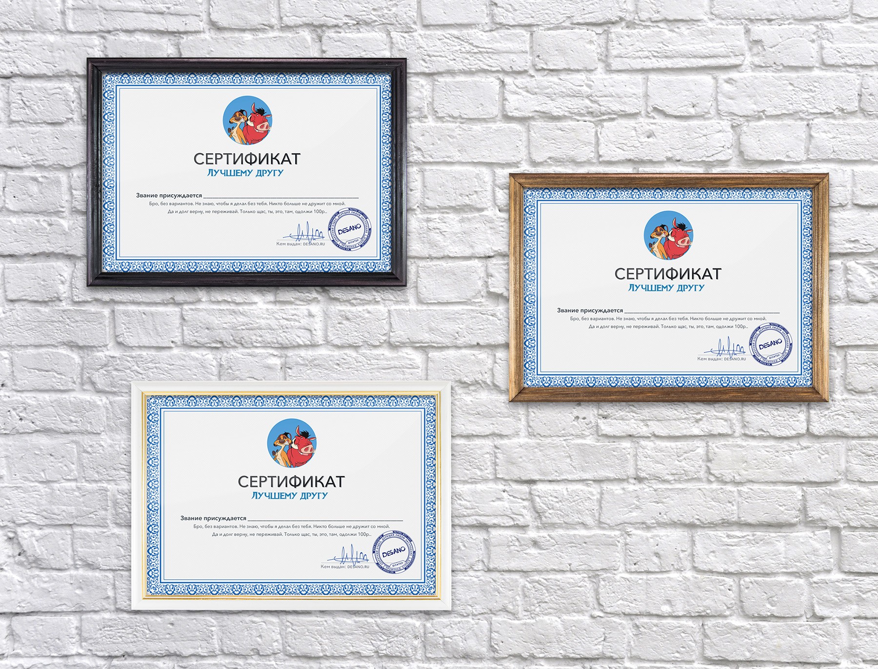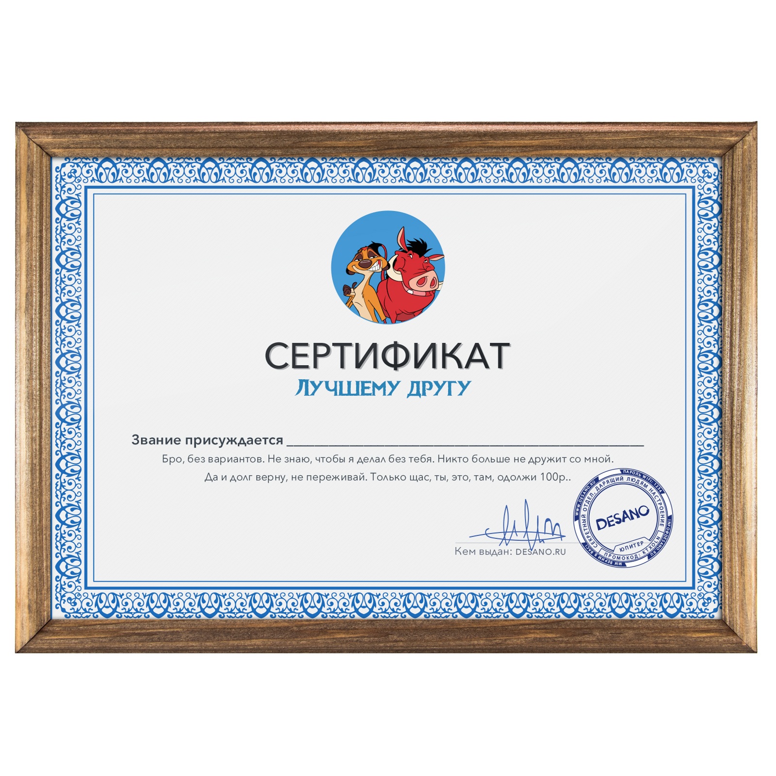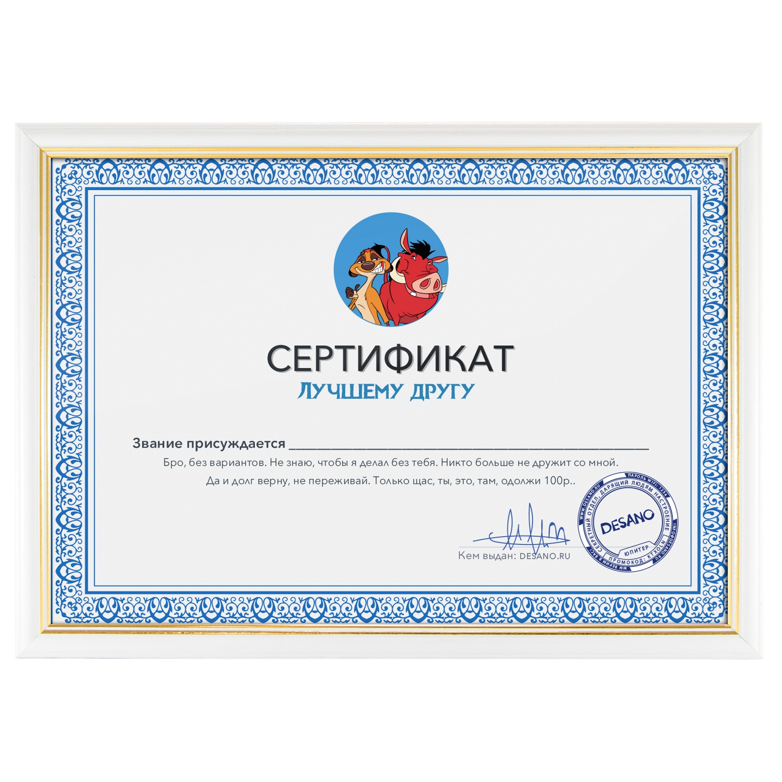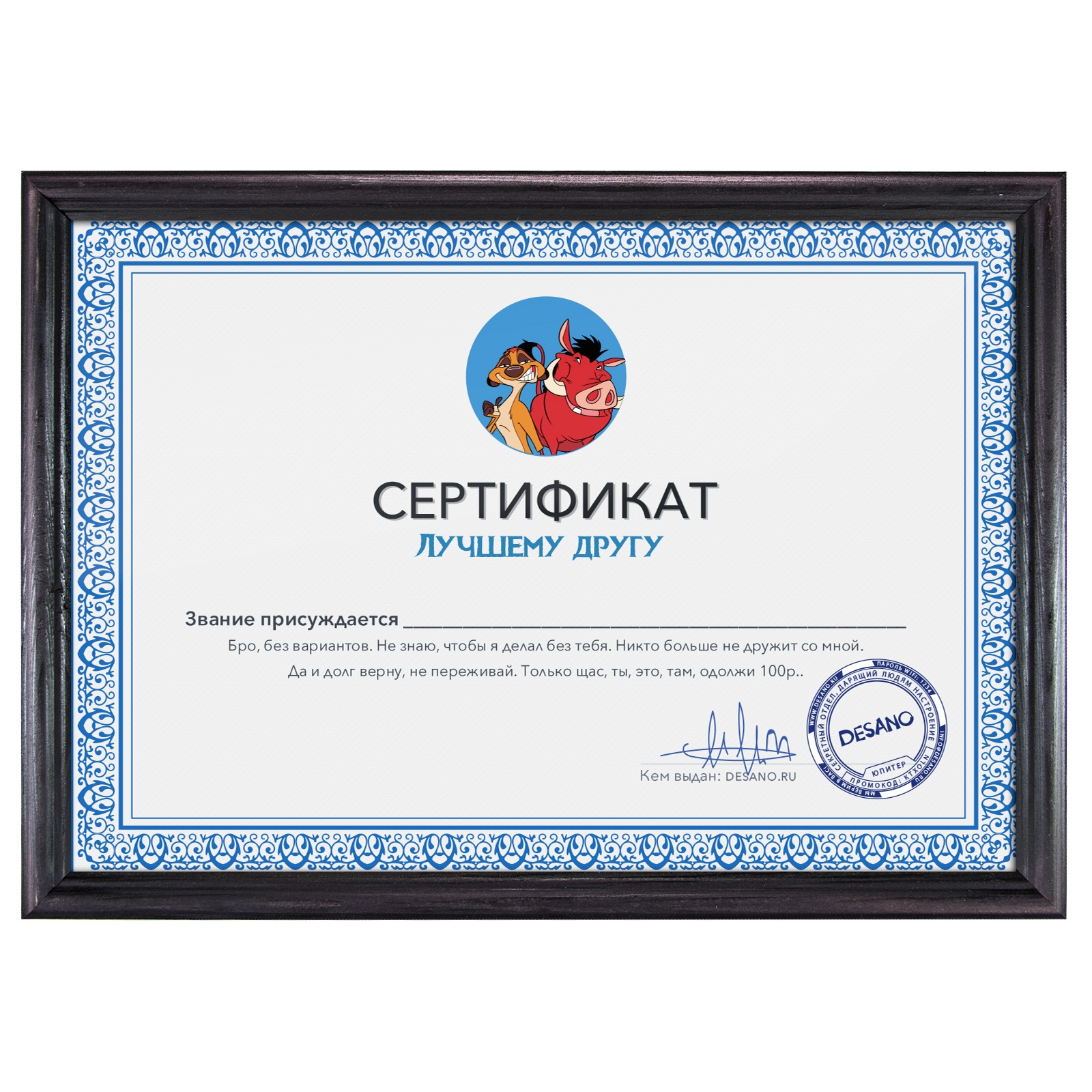 Сертификат лучшему другу