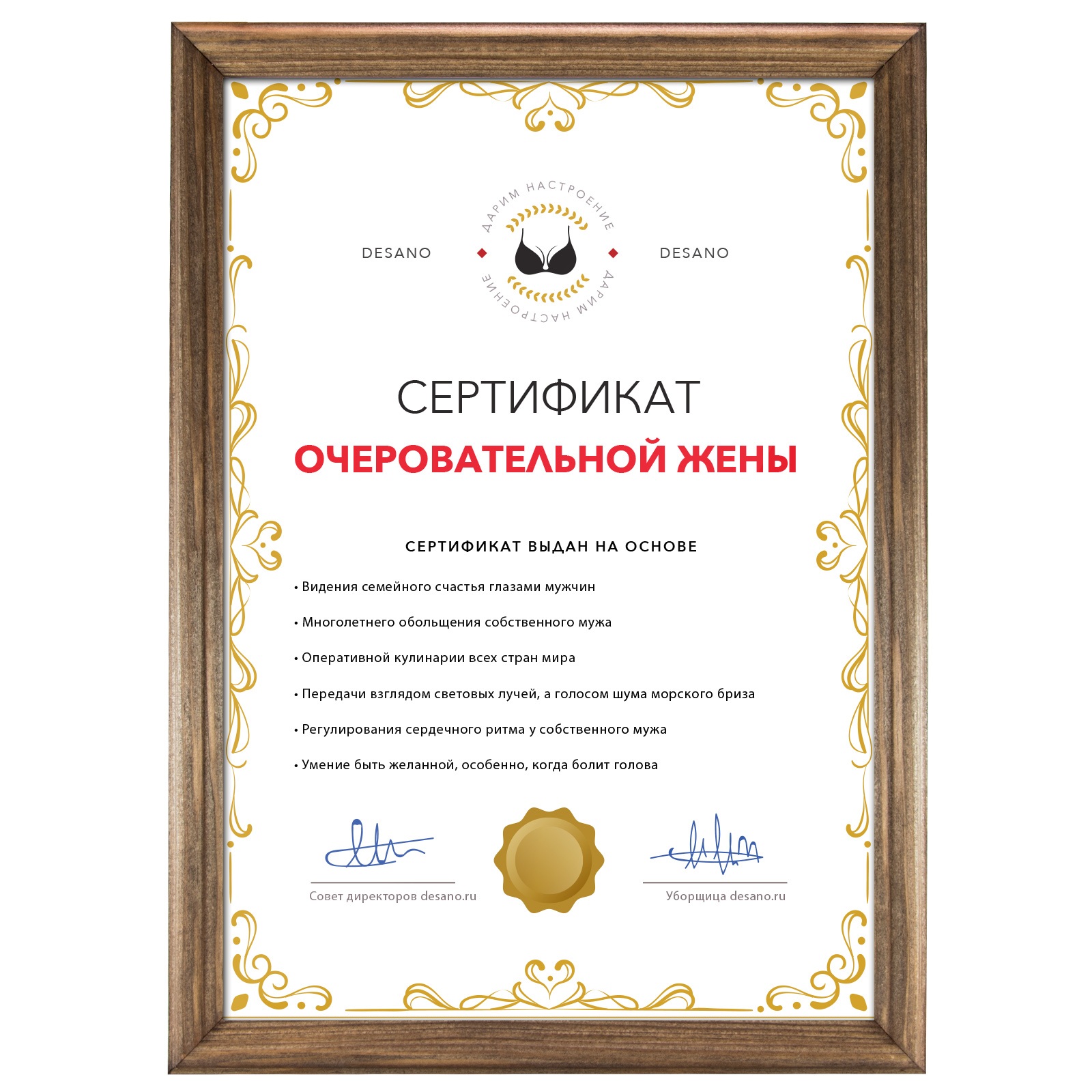 Все люди любят интересные и удивительные подарки, в связи с чем можно купить сертификат очеровательной жены, который будет каждый раз напоминать о вас, ведь он станет частью интерьера именинника.