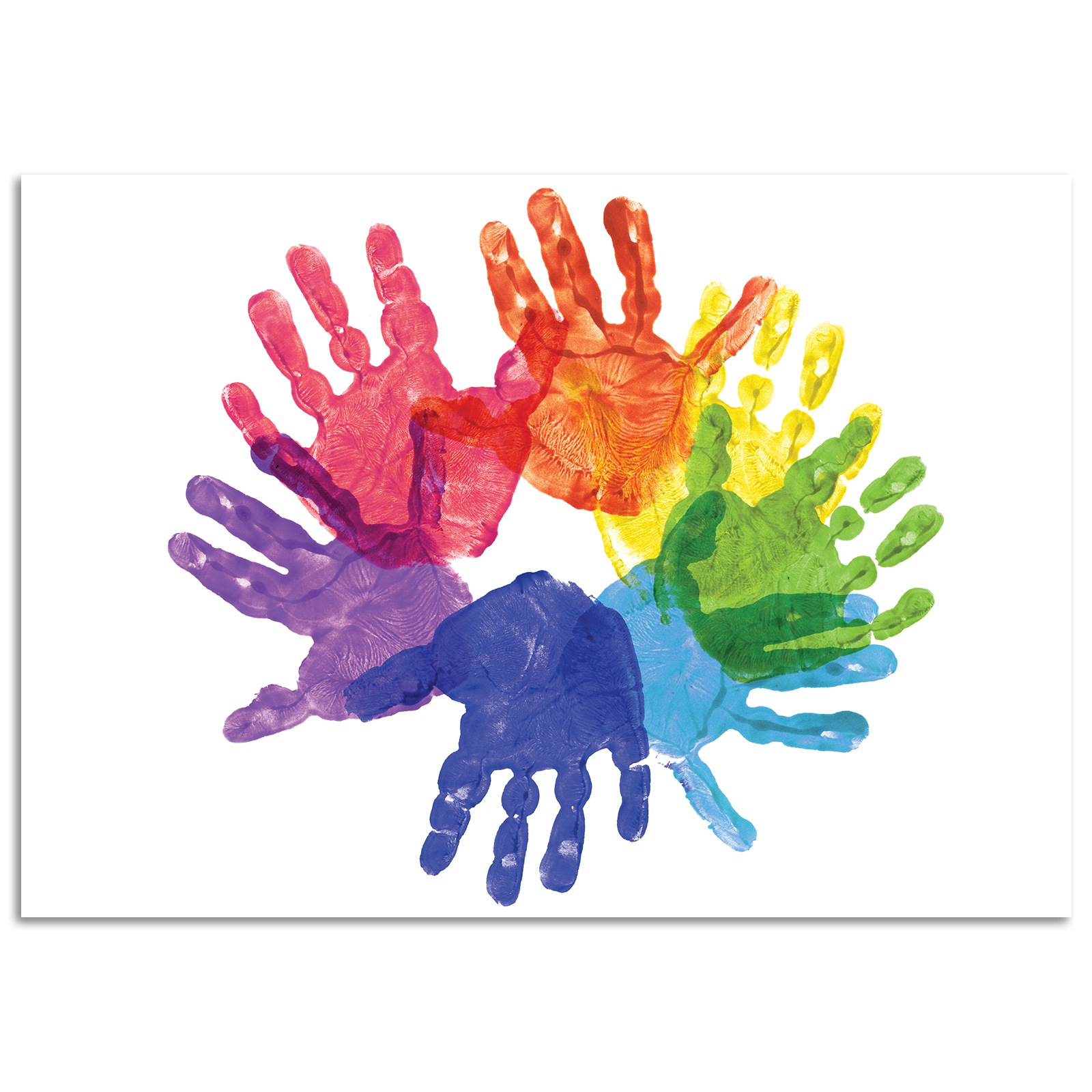 Постер «Цветные отпечатки рук», формата A0, печатается на специальной постерной бумаге. Современная постерная бумага не имеет ничего общего с той, на которой печатают календари и афиши. Подобные плакаты обычно печатаются на недорогой глянцевой бумаге, которая повреждается при малейшем воздействии. Постерная же бумага, с которой работаем мы, в разы крепче и прочнее. Ее плотность в среднем составляет 190 г/м2, что сопоставимо с фотобумагой. Данная бумага позволяет применять достаточное количество чернил, которые не растекаются, что и обеспечивает хорошее качество печати плакатов. И если даже ваш постер испачкался, можно смело протереть влажной салфеткой – повреждений не будет!