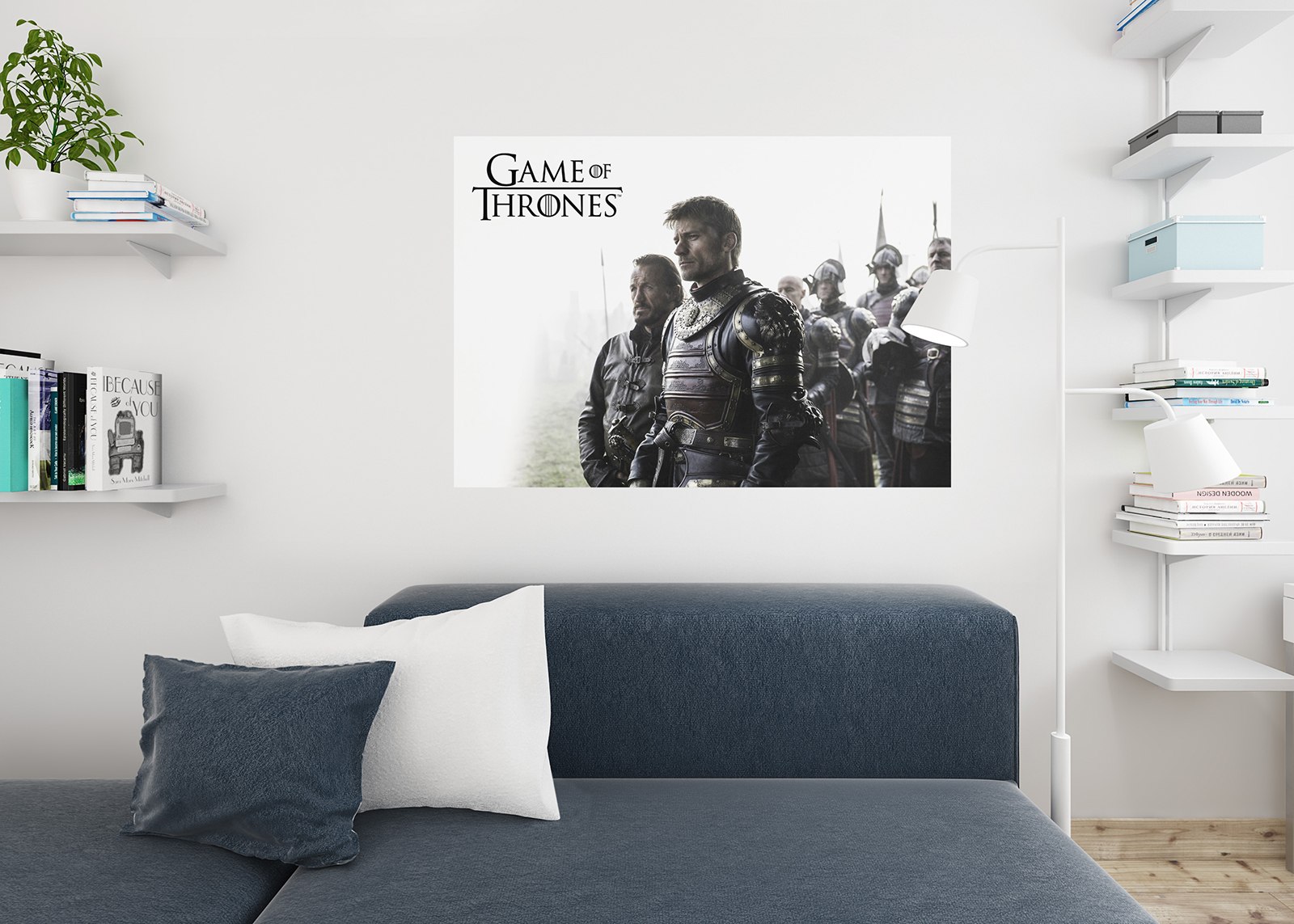 Desano предлагает широкий выбор постеров самых разных тематических направлений. В ассортименте также имеются постеры разных размеров, от А3 до A0, а при необходимости, возможна печать и еще большего размера. Чтобы внести в дизайн интерьера элемент оригинальности или просто приукрасить свой уголок, достаточно купить постер Игра Престолов - Джейме Ланистер в формате A1. Постер отлично будет смотреться как на рабочем месте, так и на стене в собственной комнате.