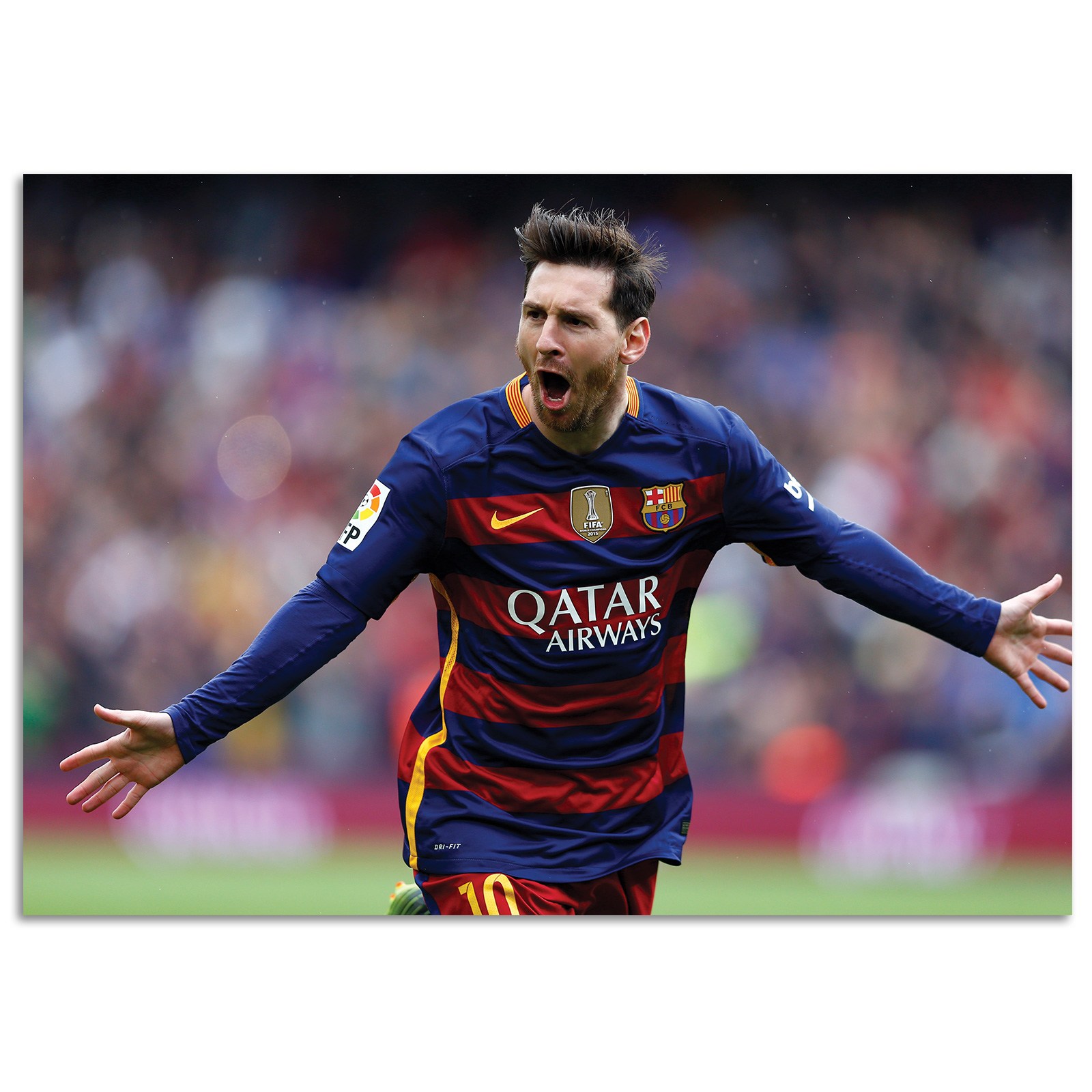 Постер Лионель Месси «Гол», формата A1, печатается на специальной постерной бумаге. Современная постерная бумага не имеет ничего общего с той, на которой печатают календари и афиши. Подобные плакаты обычно печатаются на недорогой глянцевой бумаге, которая повреждается при малейшем воздействии. Постерная же бумага, с которой работаем мы, в разы крепче и прочнее. Ее плотность в среднем составляет 190 г/м2, что сопоставимо с фотобумагой. Данная бумага позволяет применять достаточное количество чернил, которые не растекаются, что и обеспечивает хорошее качество печати плакатов. И если даже ваш постер испачкался, можно смело протереть влажной салфеткой – повреждений не будет!