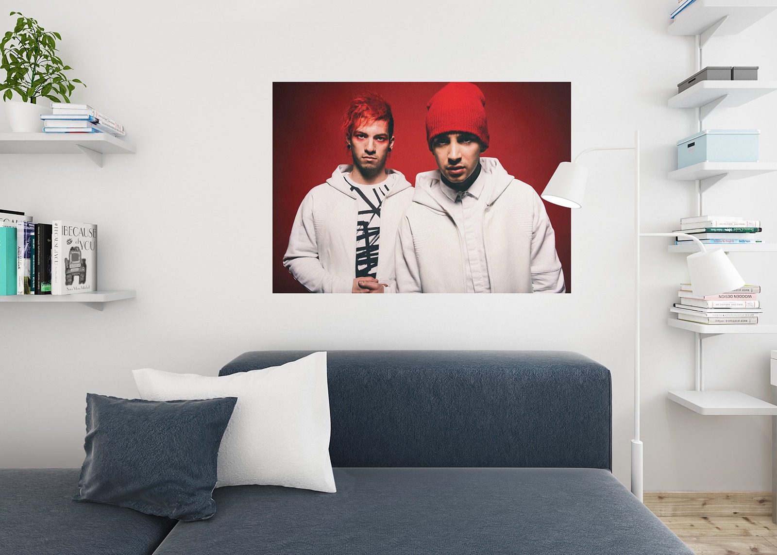 Desano предлагает широкий выбор постеров самых разных тематических направлений. В ассортименте также имеются постеры разных размеров, от А3 до A0, а при необходимости, возможна печать и еще большего размера. Чтобы внести в дизайн интерьера элемент оригинальности или просто приукрасить свой уголок, достаточно купить постер Twenty One Pilots в формате A1. Постер отлично будет смотреться как на рабочем месте, так и на стене в собственной комнате.