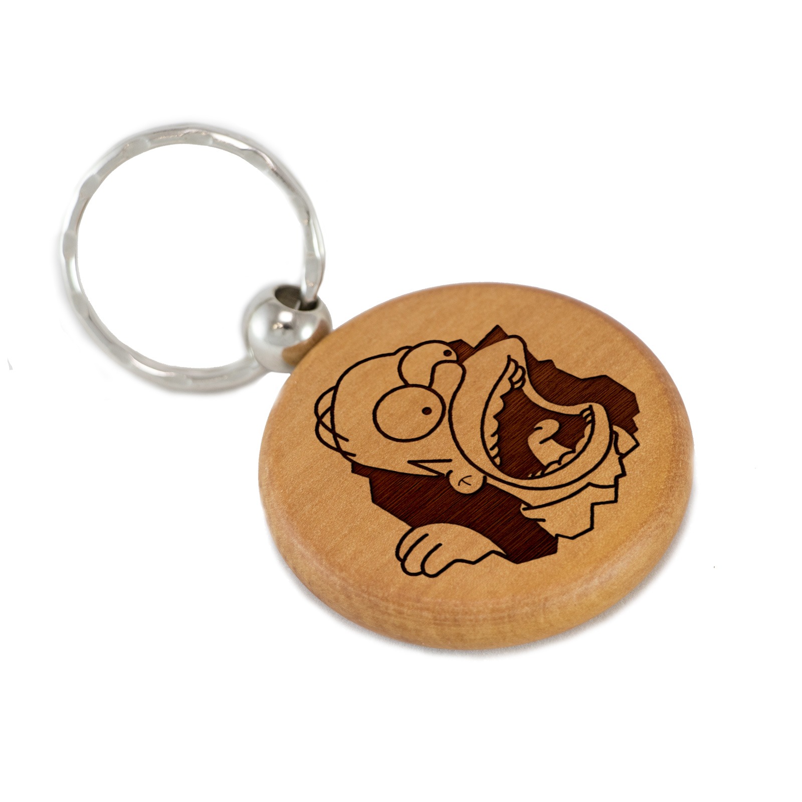 Вы можете купить деревянный брелок Гомер Симпсон всего в несколько кликов. Выберите подходящий цвет брелока, добавьте его в корзину и следуйте инструкциям. Брелоки изготавливаются из орехового и грушевого дерева. В зависимости от породы дерева и степени лазерной обработки, а так же плотности волокон, цвет гравировки на дереве может быть от бледно-желтого до темно-коричневого. Осуществляем доставку по всей России.