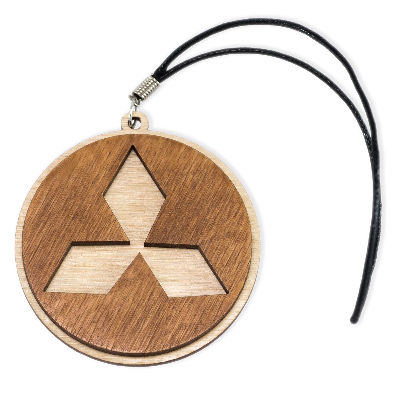 Брелок из дерева Mitsubishi изготовлен из фанеры класса АА, что обеспечивает высокое качество материала и тщательную проработку деталей. Фанера класса АА имеет гладкую и ровную поверхность с обеих сторон и является лучшим в своем сегменте. Подвеска брелка изготовлена из эко кожи, что обеспечивает приятные тактильные ощущения. Изображение по контуру наносится методом лазерной гравировки на высокоточном японском станке. Благодаря подобной резке по бокам остаются затемненные области, что подчеркивает контуры аксессуара и делает его более привлекательным. Брелок состоит из двух частей, которые обычно имеют контрастные цвета. Изображение или логотип имеет темную окраску, нанесенную эко красками. Задняя подложка состоит из светлой, тщательно отшлифованнй фанеры, которая также покрыта защитным слоем.