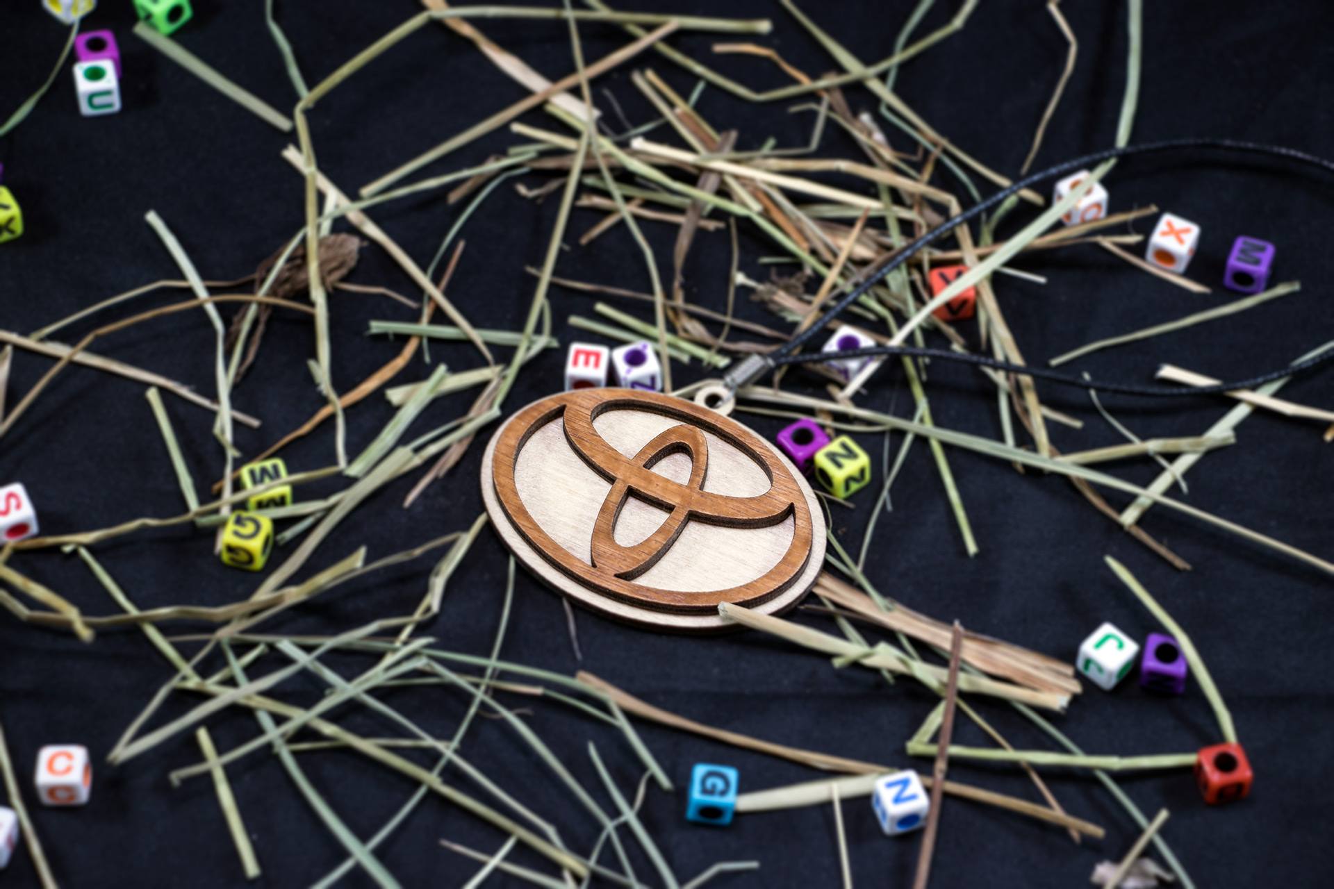 Брелок из дерева Toyota изготовлен из фанеры класса АА, что обеспечивает высокое качество материала и тщательную проработку деталей. Фанера класса АА имеет гладкую и ровную поверхность с обеих сторон и является лучшим в своем сегменте. Подвеска брелка изготовлена из эко кожи, что обеспечивает приятные тактильные ощущения. Изображение по контуру наносится методом лазерной гравировки на высокоточном японском станке. Благодаря подобной резке по бокам остаются затемненные области, что подчеркивает контуры аксессуара и делает его более привлекательным. Брелок состоит из двух частей, которые обычно имеют контрастные цвета. Изображение или логотип имеет темную окраску, нанесенную эко красками. Задняя подложка состоит из светлой, тщательно отшлифованнй фанеры, которая также покрыта защитным слоем.