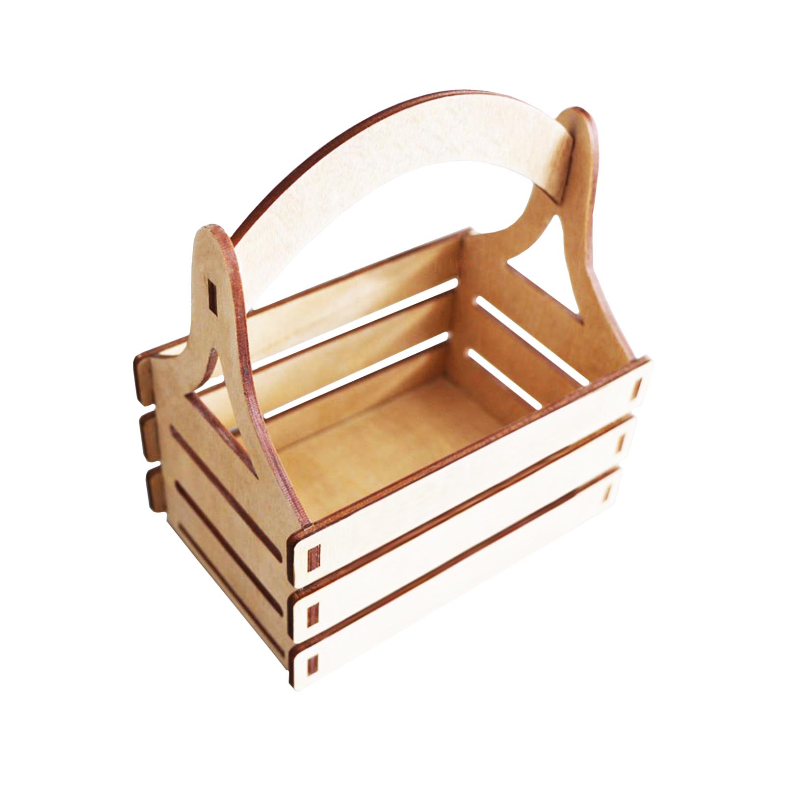 Вы можете купить подарочную корзинку из дерева в нашем интернет-магазине. Внутренние габариты данной подарочной корзинки 15,5х8,5х6 см, стенки выполнены из 0.3 см фанеры АА класса.