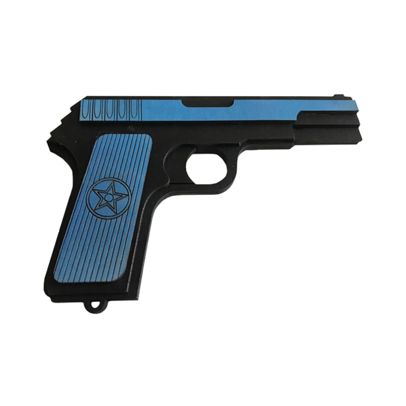 Деревянный макет легендарного пистолета ТТ. Размеры 1:1 Стреляет канцелярскими резинками на 6-10 м. Один заряд - три выстрела.