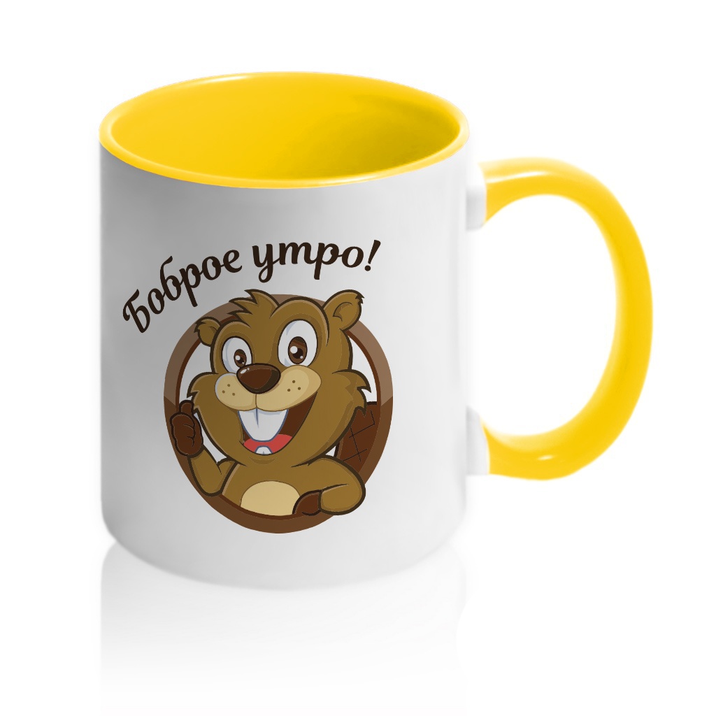 Кружка с принтом является отличным подарком коллеге, другу или самому себе ?Оригинальная керамическая кружка с принтом «Боброе утро» порадует вас и ваших друзей. Кружка изготовлена из высокоплотной керамики (11 oz). Снаружи кружка белая. Внутренняя сторона, окантовка и ручка кружки могут быть в желтом, оранжевом, бордовом, синем и черном цветах. Данная кружка предназначена для персонализации, что гарантирует качественный и сочный рисунок на ней. Вы можете купить кружку Боброе утро как в подарок, так и для себя. Разбавьте ваши будни яркими красками!