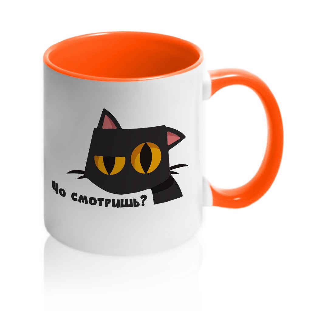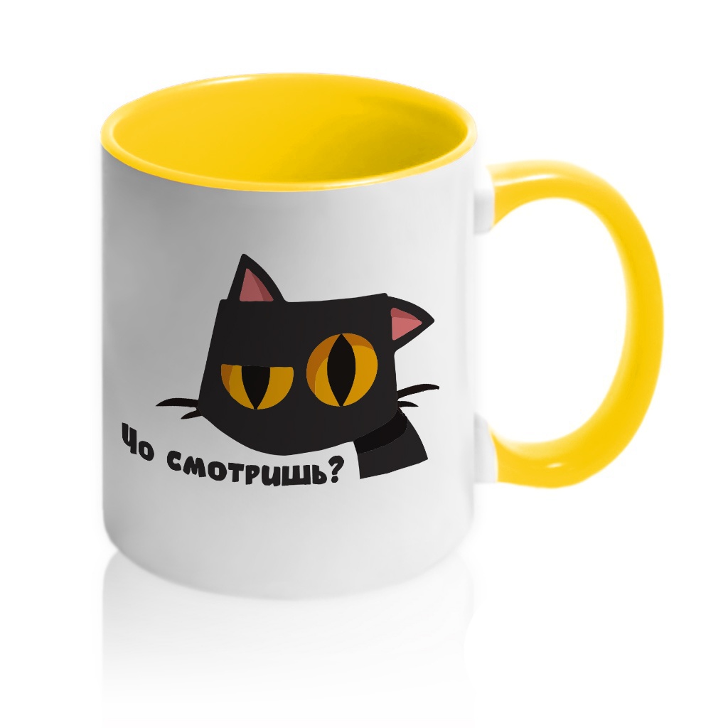 Кружка с принтом является отличным подарком коллеге, другу или самому себе ?Оригинальная керамическая кружка с принтом «Чо смотришь?» порадует вас и ваших друзей. Кружка изготовлена из высокоплотной керамики (11 oz). Снаружи кружка белая. Внутренняя сторона, окантовка и ручка кружки могут быть в желтом, оранжевом, бордовом, синем и черном цветах. Данная кружка предназначена для персонализации, что гарантирует качественный и сочный рисунок на ней. Вы можете купить кружку Чо смотришь как в подарок, так и для себя. Разбавьте ваши будни яркими красками!