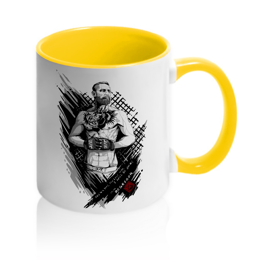 Кружка с принтом является отличным подарком коллеге, другу или самому себе ?Оригинальная керамическая кружка с принтом «Конор Макгрегор» порадует вас и ваших друзей. Кружка изготовлена из высокоплотной керамики (11 oz). Снаружи кружка белая. Внутренняя сторона, окантовка и ручка кружки могут быть в желтом, оранжевом, бордовом, синем и черном цветах. Данная кружка предназначена для персонализации, что гарантирует качественный и сочный рисунок на ней. Вы можете купить кружку Конор Макгрегор как в подарок, так и для себя. Разбавьте ваши будни яркими красками!
