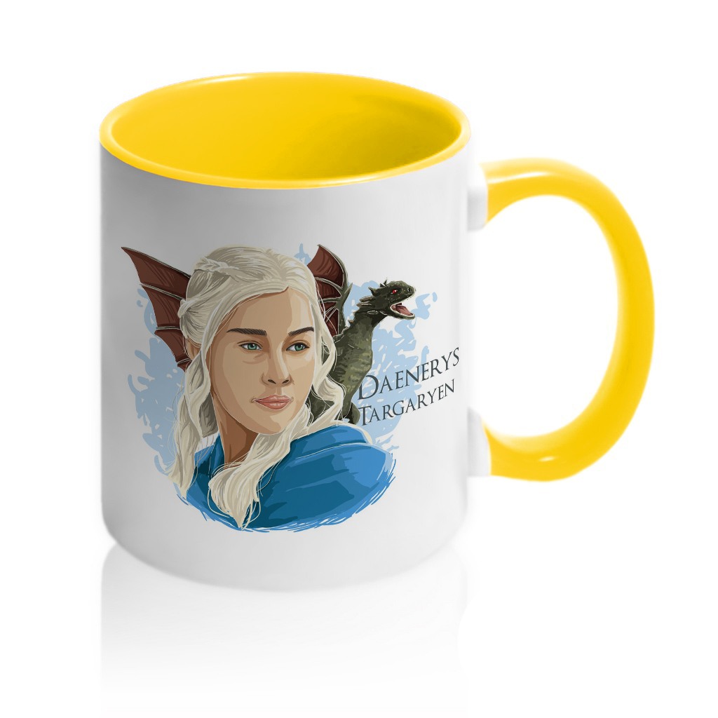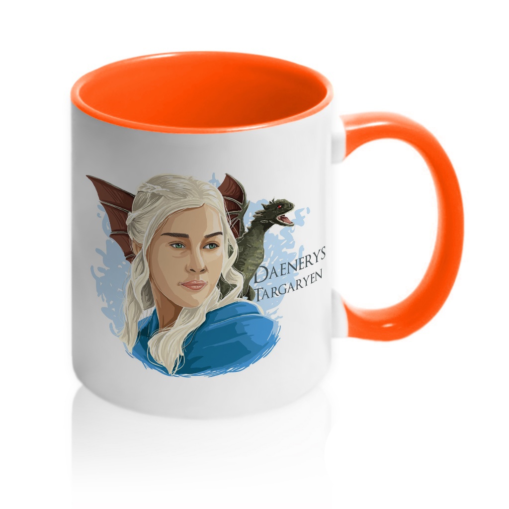 Кружка с принтом является отличным подарком коллеге, другу или самому себе ?Оригинальная керамическая кружка с принтом «Дейнерис Таргариен» порадует вас и ваших друзей. Кружка изготовлена из высокоплотной керамики (11 oz). Снаружи кружка белая. Внутренняя сторона, окантовка и ручка кружки могут быть в желтом, оранжевом, бордовом, синем и черном цветах. Данная кружка предназначена для персонализации, что гарантирует качественный и сочный рисунок на ней. Вы можете купить кружку Дейнерис Таргариен как в подарок, так и для себя. Разбавьте ваши будни яркими красками!