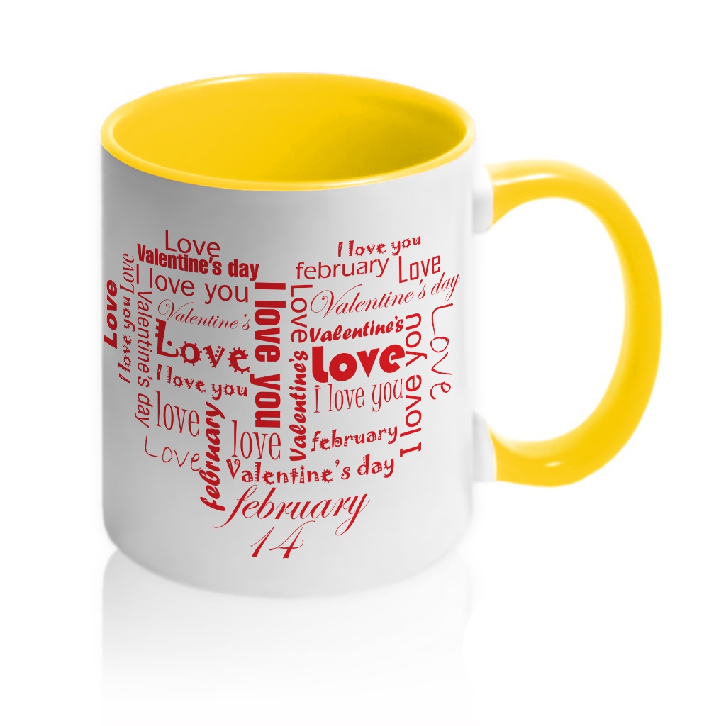 Кружка с принтом является отличным подарком коллеге, другу или самому себе ?Оригинальная керамическая кружка с принтом «I Love You (14 февраля)» порадует вас и ваших друзей. Кружка изготовлена из высокоплотной керамики (11 oz). Снаружи кружка белая. Внутренняя сторона, окантовка и ручка кружки могут быть в желтом, оранжевом, бордовом, синем и черном цветах. Данная кружка предназначена для персонализации, что гарантирует качественный и сочный рисунок на ней. Вы можете купить кружку I Love You (14 февраля) как в подарок, так и для себя. Разбавьте ваши будни яркими красками!