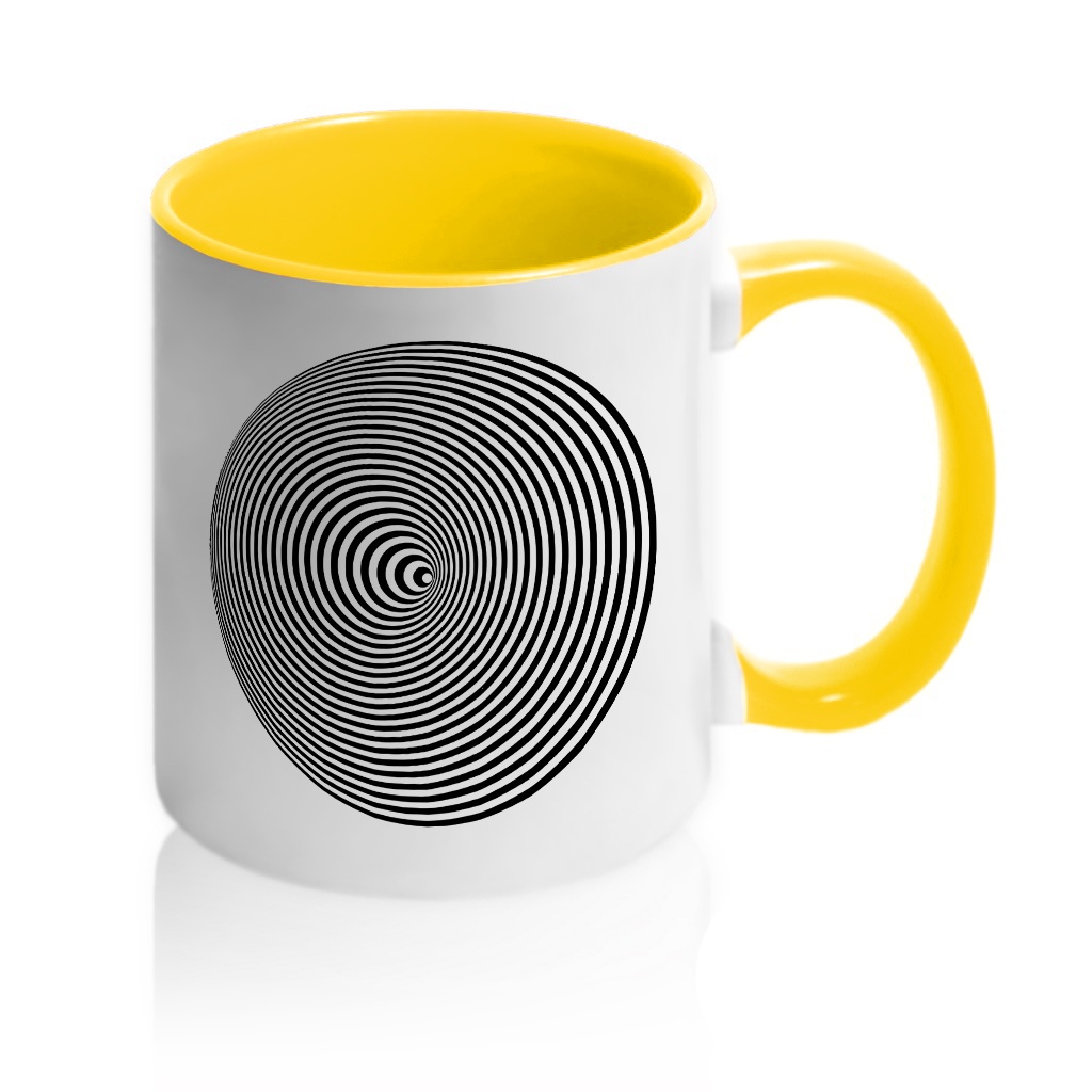 Кружка с принтом является отличным подарком коллеге, другу или самому себе ?Оригинальная керамическая кружка с принтом «Иллюзионные круги» порадует вас и ваших друзей. Кружка изготовлена из высокоплотной керамики (11 oz). Снаружи кружка белая. Внутренняя сторона, окантовка и ручка кружки могут быть в желтом, оранжевом, бордовом, синем и черном цветах. Данная кружка предназначена для персонализации, что гарантирует качественный и сочный рисунок на ней. Вы можете купить кружку иллюзионные круги как в подарок, так и для себя. Разбавьте ваши будни яркими красками!