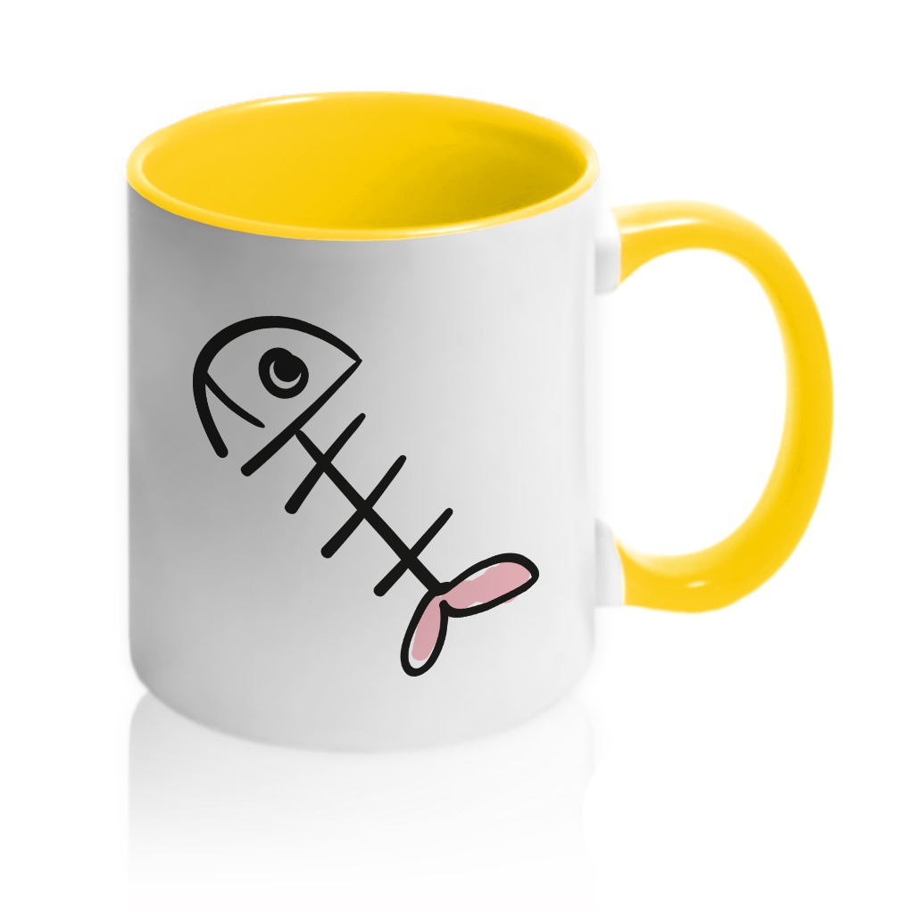 Кружка с принтом является отличным подарком коллеге, другу или самому себе ?Оригинальная керамическая кружка с принтом «Косточки рыбки» порадует вас и ваших друзей. Кружка изготовлена из высокоплотной керамики (11 oz). Снаружи кружка белая. Внутренняя сторона, окантовка и ручка кружки могут быть в желтом, оранжевом, бордовом, синем и черном цветах. Данная кружка предназначена для персонализации, что гарантирует качественный и сочный рисунок на ней. Вы можете купить кружку косточки рыбки как в подарок, так и для себя. Разбавьте ваши будни яркими красками!