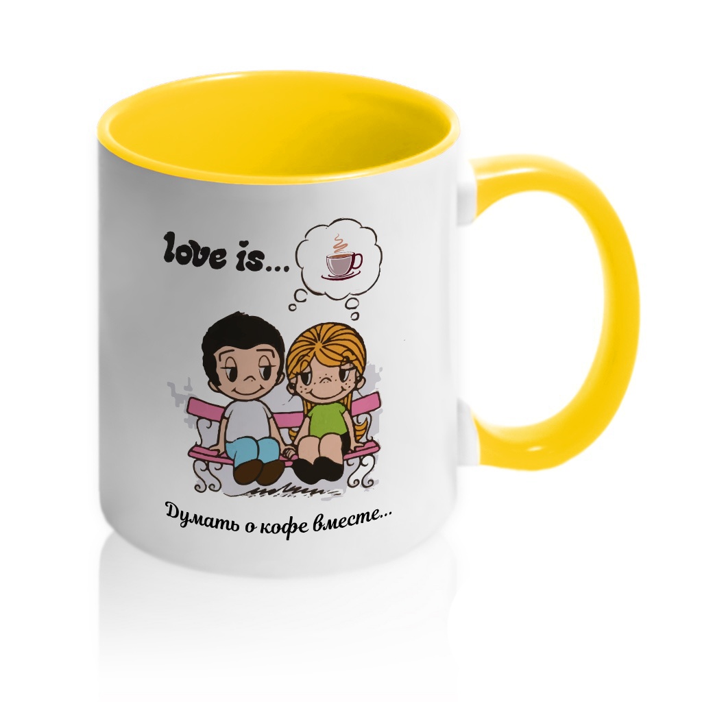 Кружка с принтом является отличным подарком коллеге, другу или самому себе ?Оригинальная керамическая кружка с принтом «Love is кофе» порадует вас и ваших друзей. Кружка изготовлена из высокоплотной керамики (11 oz). Снаружи кружка белая. Внутренняя сторона, окантовка и ручка кружки могут быть в желтом, оранжевом, бордовом, синем и черном цветах. Данная кружка предназначена для персонализации, что гарантирует качественный и сочный рисунок на ней. Вы можете купить кружку Love is кофе как в подарок, так и для себя. Разбавьте ваши будни яркими красками!