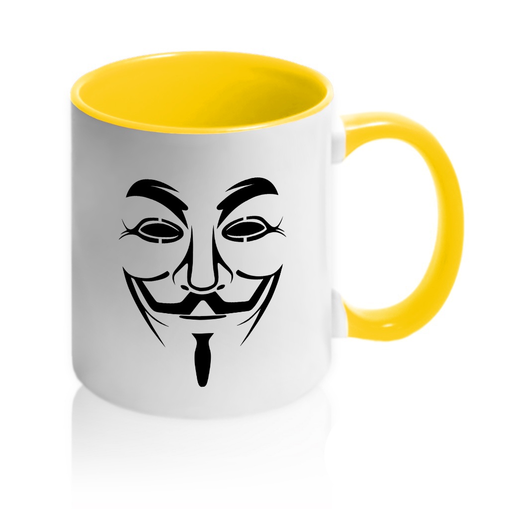 Кружка с принтом является отличным подарком коллеге, другу или самому себе ?Оригинальная керамическая кружка с принтом «Маска Гая Фокса» порадует вас и ваших друзей. Кружка изготовлена из высокоплотной керамики (11 oz). Снаружи кружка белая. Внутренняя сторона, окантовка и ручка кружки могут быть в желтом, оранжевом, бордовом, синем и черном цветах. Данная кружка предназначена для персонализации, что гарантирует качественный и сочный рисунок на ней. Вы можете купить кружку маска Гая Фокса как в подарок, так и для себя. Разбавьте ваши будни яркими красками!