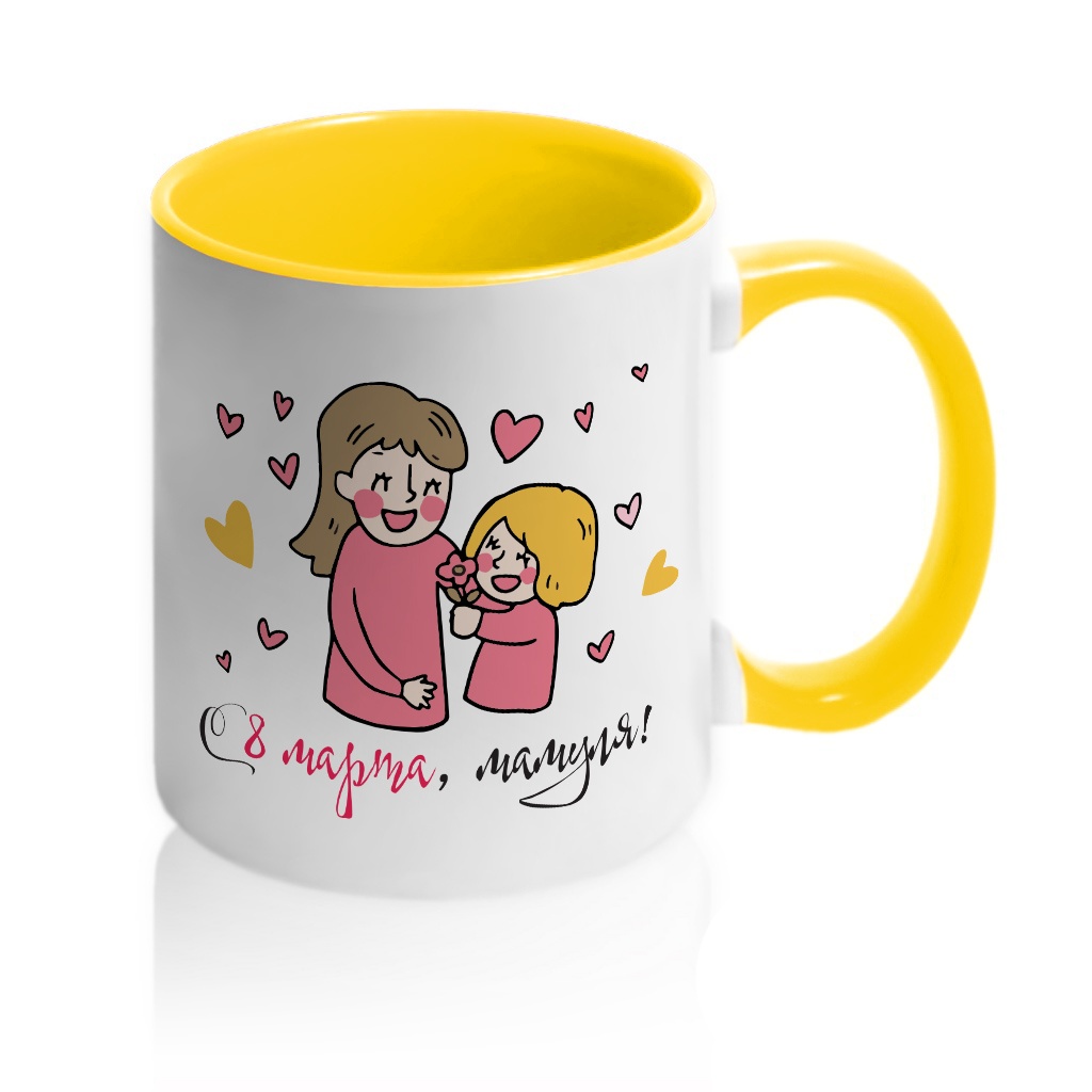 Кружка с принтом является отличным подарком коллеге, другу или самому себе ?Оригинальная керамическая кружка с принтом «С 8 марта, мамуля!» порадует вас и ваших друзей. Кружка изготовлена из высокоплотной керамики (11 oz). Снаружи кружка белая. Внутренняя сторона, окантовка и ручка кружки могут быть в желтом, оранжевом, бордовом, синем и черном цветах. Данная кружка предназначена для персонализации, что гарантирует качественный и сочный рисунок на ней. Вы можете купить кружку С 8 марта, мамуля! как в подарок, так и для себя. Разбавьте ваши будни яркими красками!