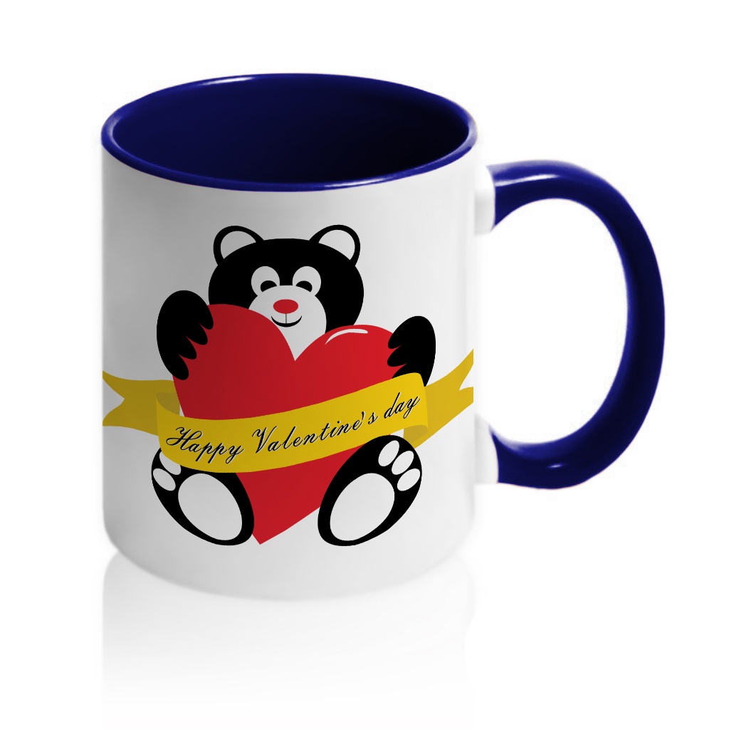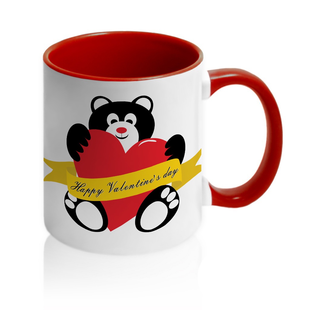 Кружка с принтом является отличным подарком коллеге, другу или самому себе ?Оригинальная керамическая кружка с принтом мишка «Happy Valentine's Day» порадует вас и ваших друзей. Кружка изготовлена из высокоплотной керамики (11 oz). Снаружи кружка белая. Внутренняя сторона, окантовка и ручка кружки могут быть в желтом, оранжевом, бордовом, синем и черном цветах. Данная кружка предназначена для персонализации, что гарантирует качественный и сочный рисунок на ней. Вы можете купить кружку с мишкой «Happy Valentine's Day» как в подарок, так и для себя. Разбавьте ваши будни яркими красками!