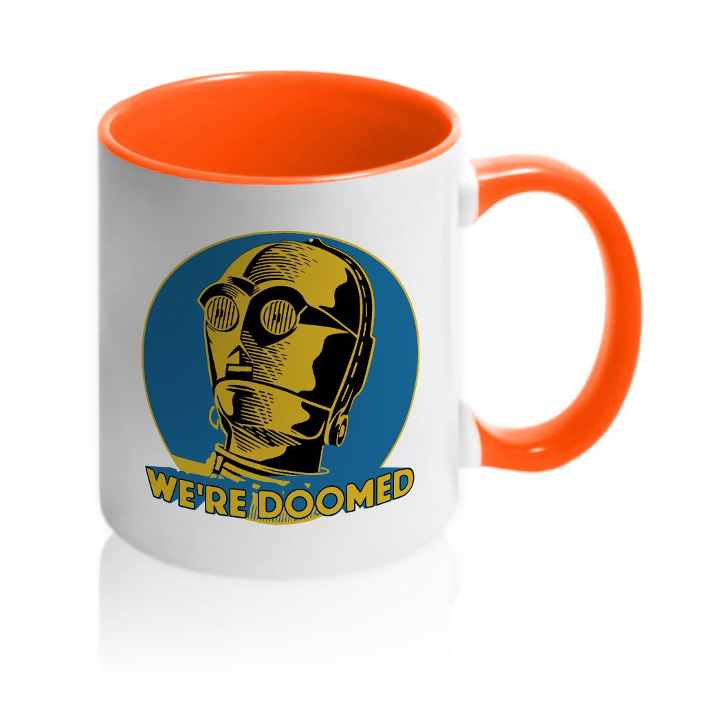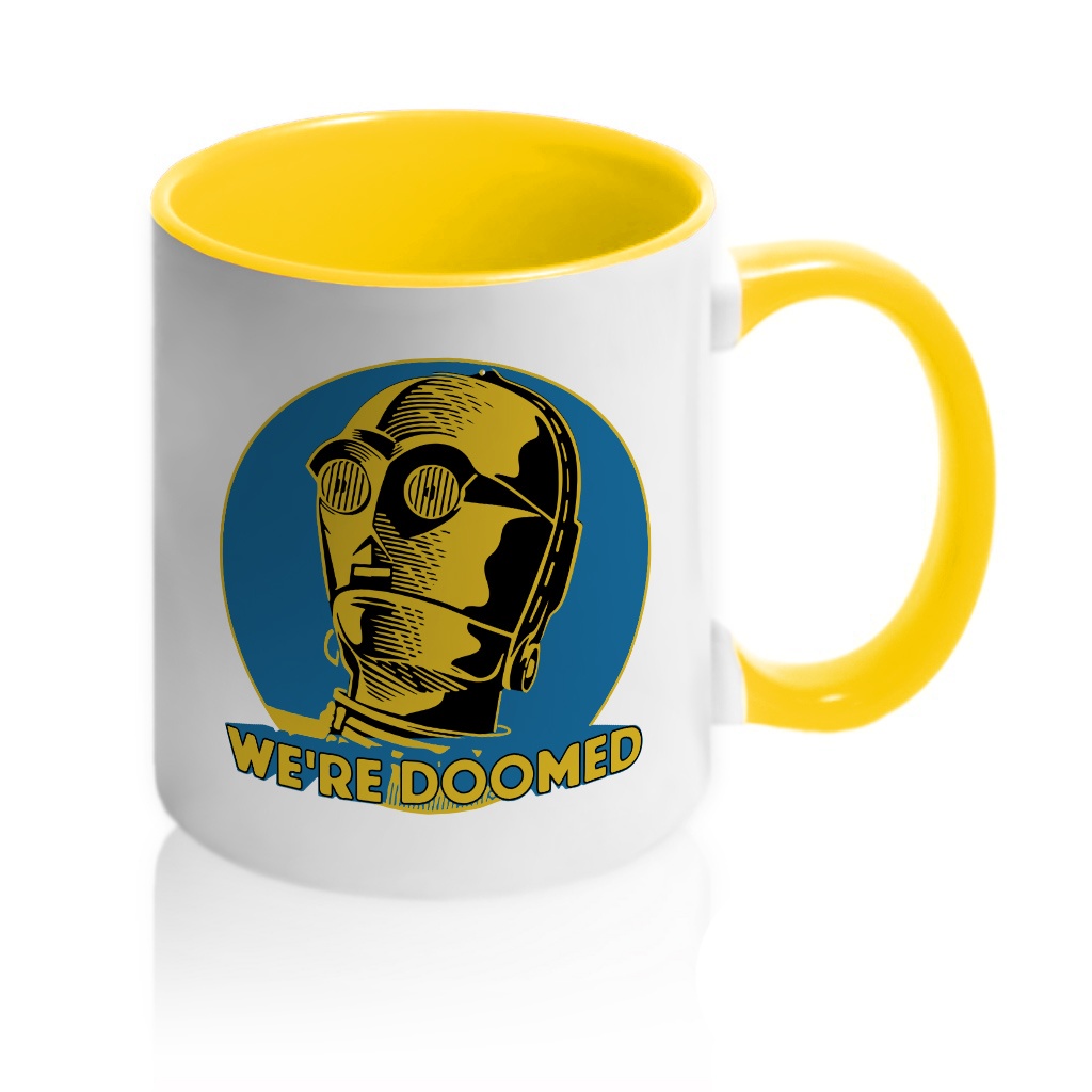 Кружка с принтом является отличным подарком коллеге, другу или самому себе ?Оригинальная керамическая кружка с принтом «Star Wars - We Are Doomed» порадует вас и ваших друзей. Кружка изготовлена из высокоплотной керамики (11 oz). Снаружи кружка белая. Внутренняя сторона, окантовка и ручка кружки могут быть в желтом, оранжевом, бордовом, синем и черном цветах. Данная кружка предназначена для персонализации, что гарантирует качественный и сочный рисунок на ней. Вы можете купить кружку Star Wars - We Are Doomed как в подарок, так и для себя. Разбавьте ваши будни яркими красками!