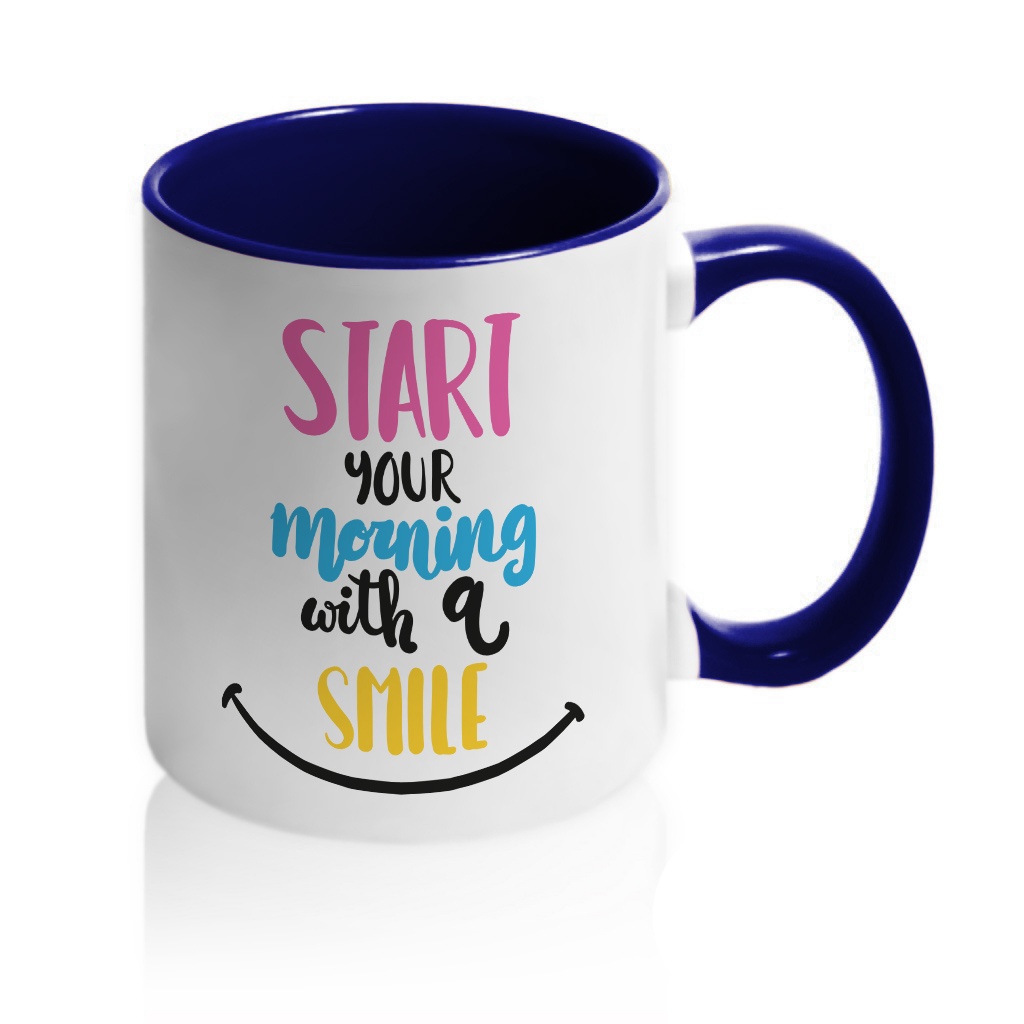 Кружка с принтом является отличным подарком коллеге, другу или самому себе ?Оригинальная керамическая кружка с принтом «Start your morning with a smile» порадует вас и ваших друзей. Кружка изготовлена из высокоплотной керамики (11 oz). Снаружи кружка белая. Внутренняя сторона, окантовка и ручка кружки могут быть в желтом, оранжевом, бордовом, синем и черном цветах. Данная кружка предназначена для персонализации, что гарантирует качественный и сочный рисунок на ней. Вы можете купить кружку Start your morning with a smile как в подарок, так и для себя. Разбавьте ваши будни яркими красками!