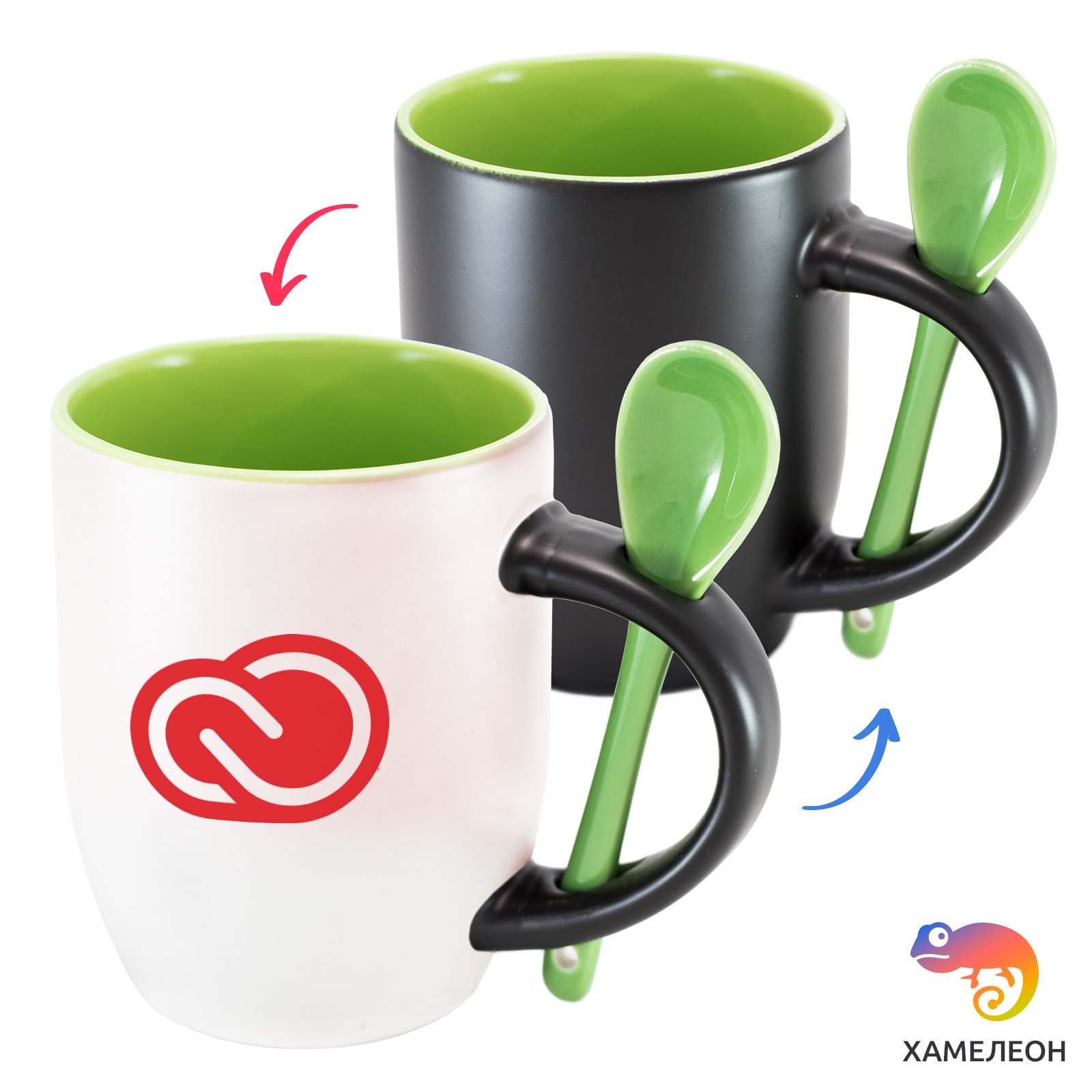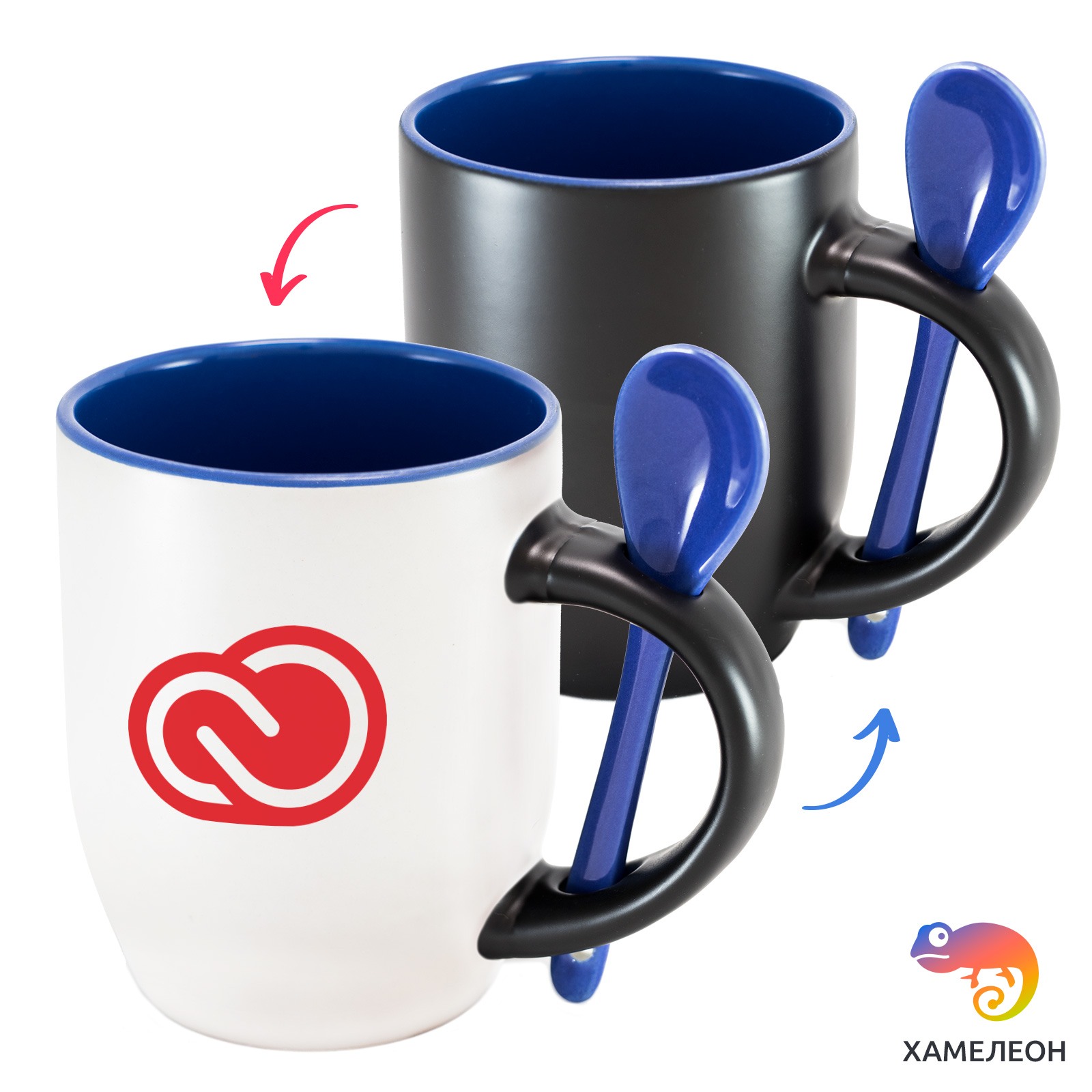 Кружка с принтом является отличным подарком коллеге, другу или самому себе ?Оригинальная кружка хамелеон Adobe Cloud ложкой приукрасит ваши будни или станет отличным подарком. Кружка изготовлена из высококачественной керамики, а специальный термопегментный слой позволяет ей менять цвет, в зависимости от температуры. Изначально кружка имеет черную заливку, которая становится белой, когда вы наливаете кипяток. Термопегменты становятся прозрачными, начиная с 50°C. Под черным пегментным слоем скрываются необычные рисунки, которые удивят многих.