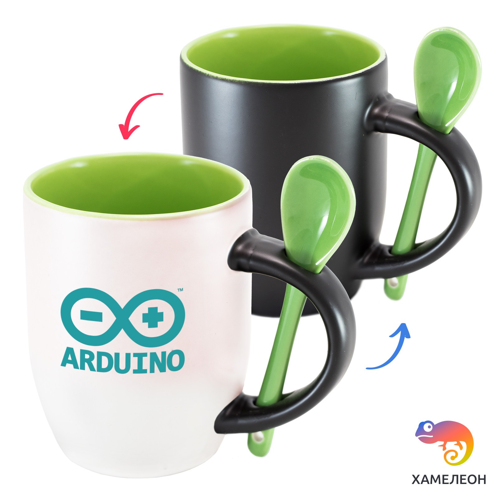 Кружка с принтом является отличным подарком коллеге, другу или самому себе ?Оригинальная кружка хамелеон Arduino ложкой приукрасит ваши будни или станет отличным подарком. Кружка изготовлена из высококачественной керамики, а специальный термопегментный слой позволяет ей менять цвет, в зависимости от температуры. Изначально кружка имеет черную заливку, которая становится белой, когда вы наливаете кипяток. Термопегменты становятся прозрачными, начиная с 50°C. Под черным пегментным слоем скрываются необычные рисунки, которые удивят многих.