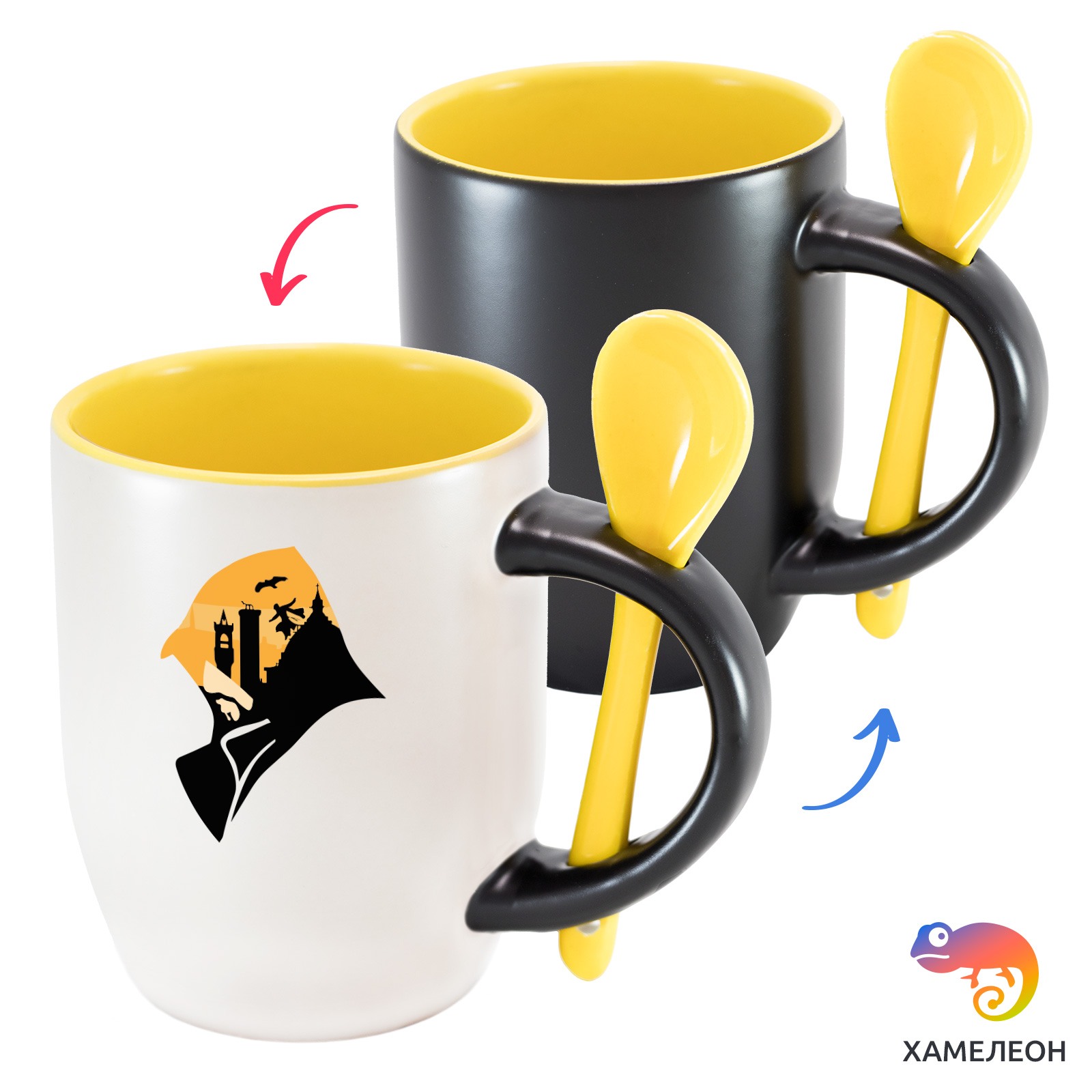 Кружка с принтом является отличным подарком коллеге, другу или самому себе ?Оригинальная кружка хамелеон Assassin's Creed с ложкой приукрасит ваши будни или станет отличным подарком. Кружка изготовлена из высококачественной керамики, а специальный термопегментный слой позволяет ей менять цвет, в зависимости от температуры. Изначально кружка имеет черную заливку, которая становится белой, когда вы наливаете кипяток. Термопегменты становятся прозрачными, начиная с 50°C. Под черным пегментным слоем скрываются необычные рисунки, которые удивят многих.