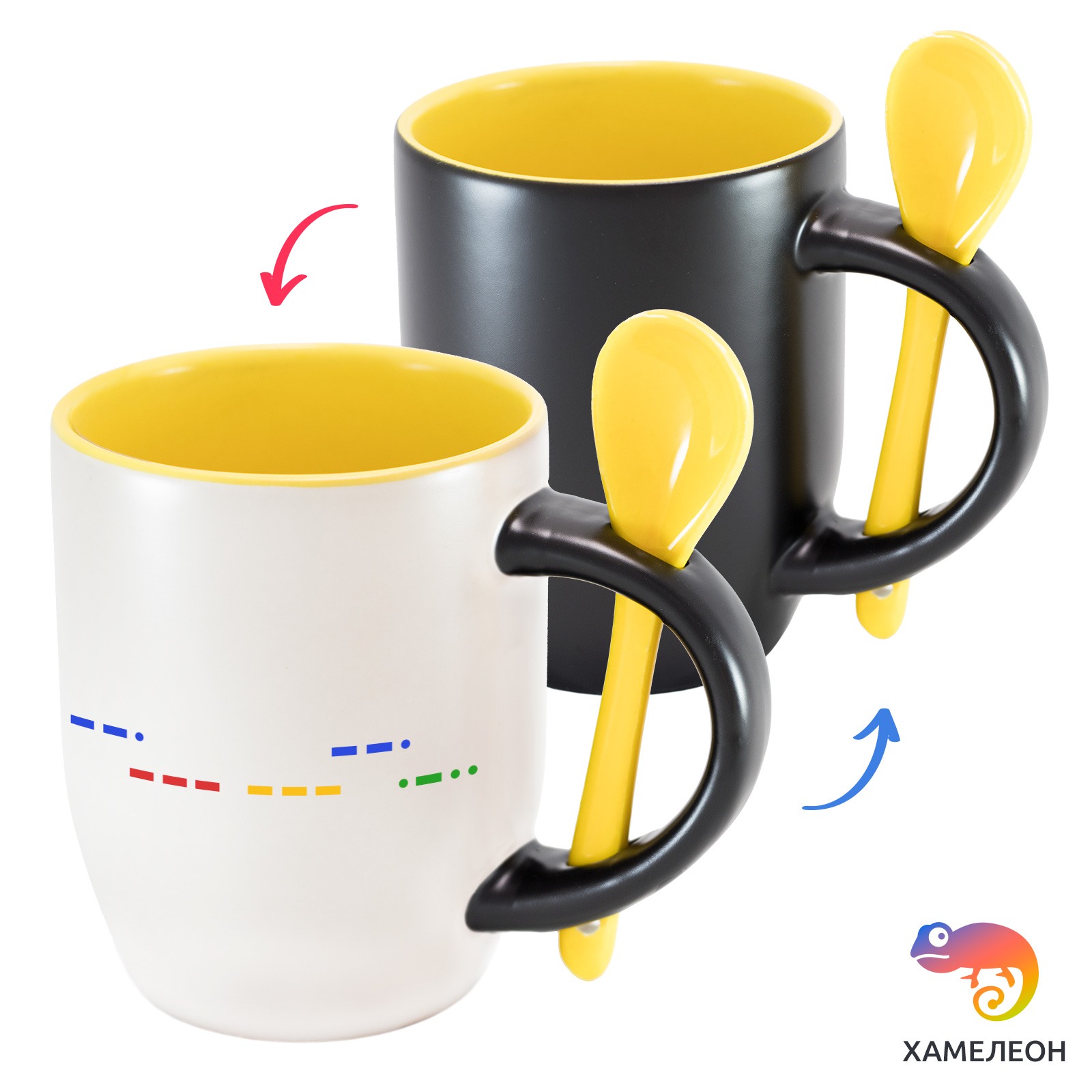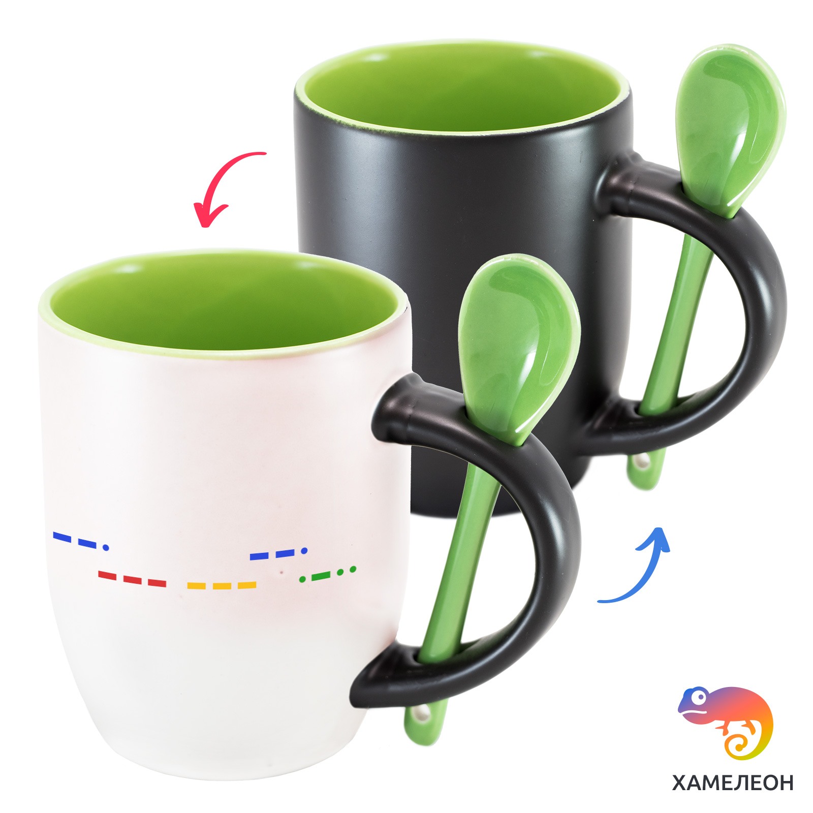 Кружка с принтом является отличным подарком коллеге, другу или самому себе ?Оригинальная кружка хамелеон «Азбука морзе» с ложкой приукрасит ваши будни или станет отличным подарком. Кружка изготовлена из высококачественной керамики, а специальный термопегментный слой позволяет ей менять цвет, в зависимости от температуры. Изначально кружка имеет черную заливку, которая становится белой, когда вы наливаете кипяток. Термопегменты становятся прозрачными, начиная с 50°C. Под черным пегментным слоем скрываются необычные рисунки, которые удивят многих.
