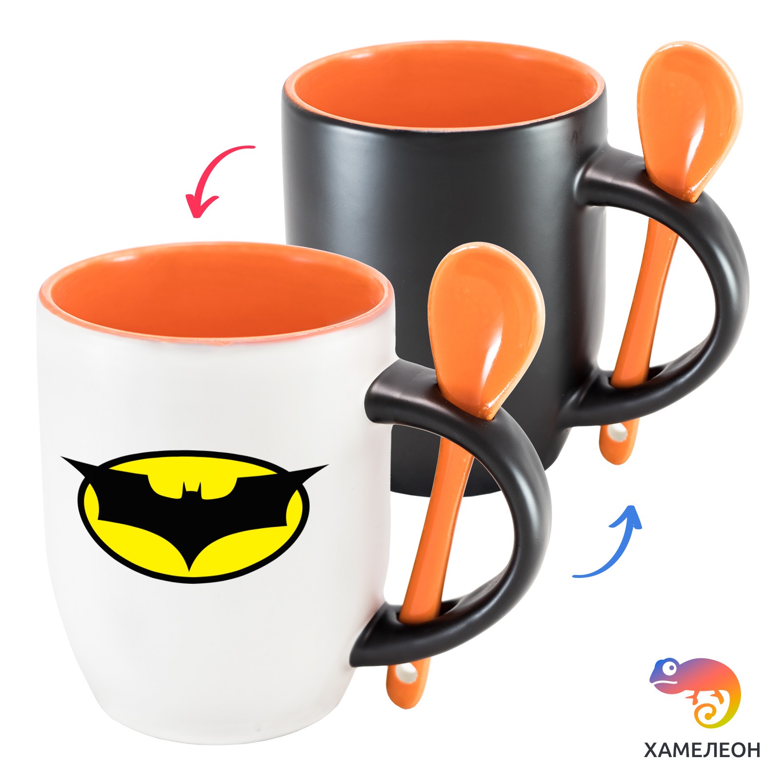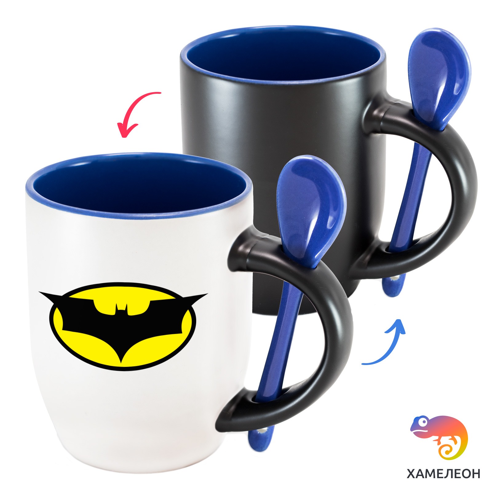 Кружка с принтом является отличным подарком коллеге, другу или самому себе ?Оригинальная кружка хамелеон Batman (logo) с ложкой приукрасит ваши будни или станет отличным подарком. Кружка изготовлена из высококачественной керамики, а специальный термопегментный слой позволяет ей менять цвет, в зависимости от температуры. Изначально кружка имеет черную заливку, которая становится белой, когда вы наливаете кипяток. Термопегменты становятся прозрачными, начиная с 50°C. Под черным пегментным слоем скрываются необычные рисунки, которые удивят многих.