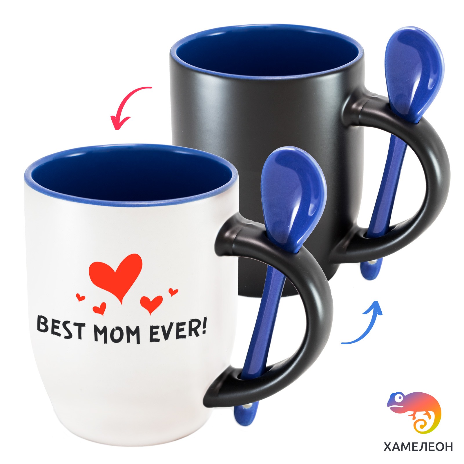 Кружка с принтом является отличным подарком коллеге, другу или самому себе ?Оригинальная кружка хамелеон Best Mom Ever с ложкой приукрасит ваши будни или станет отличным подарком. Кружка изготовлена из высококачественной керамики, а специальный термопегментный слой позволяет ей менять цвет, в зависимости от температуры. Изначально кружка имеет черную заливку, которая становится белой, когда вы наливаете кипяток. Термопегменты становятся прозрачными, начиная с 50°C. Под черным пегментным слоем скрываются необычные рисунки, которые удивят многих.