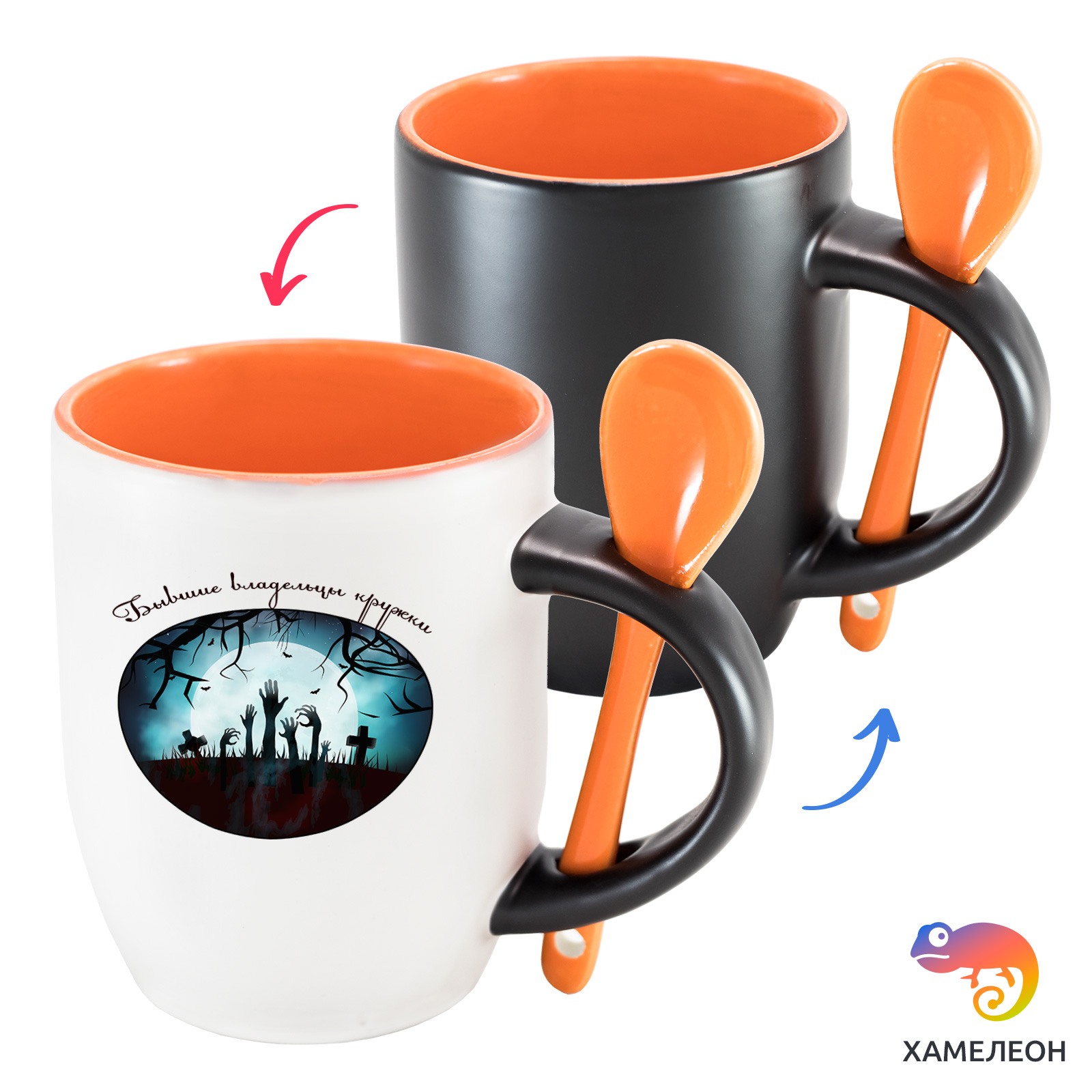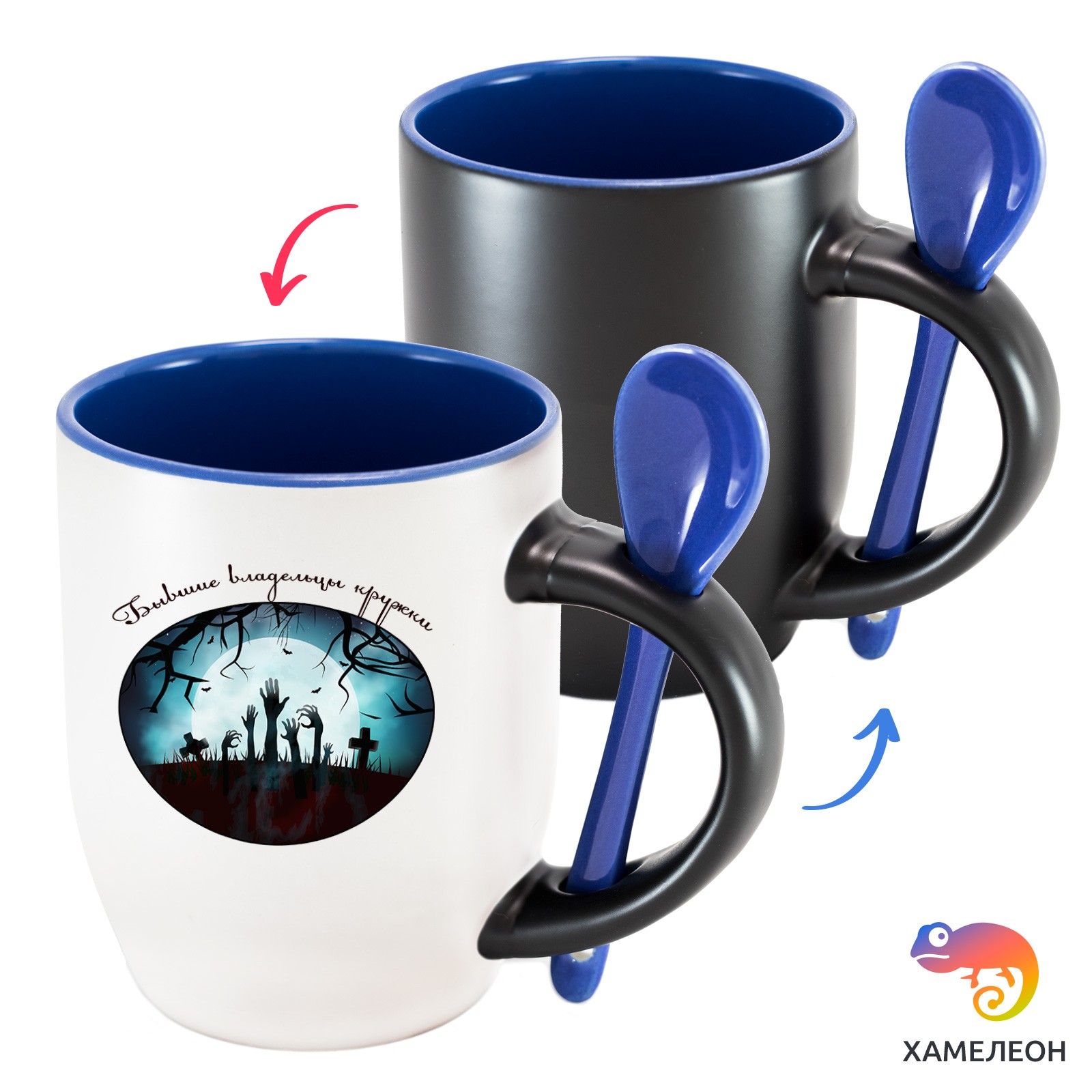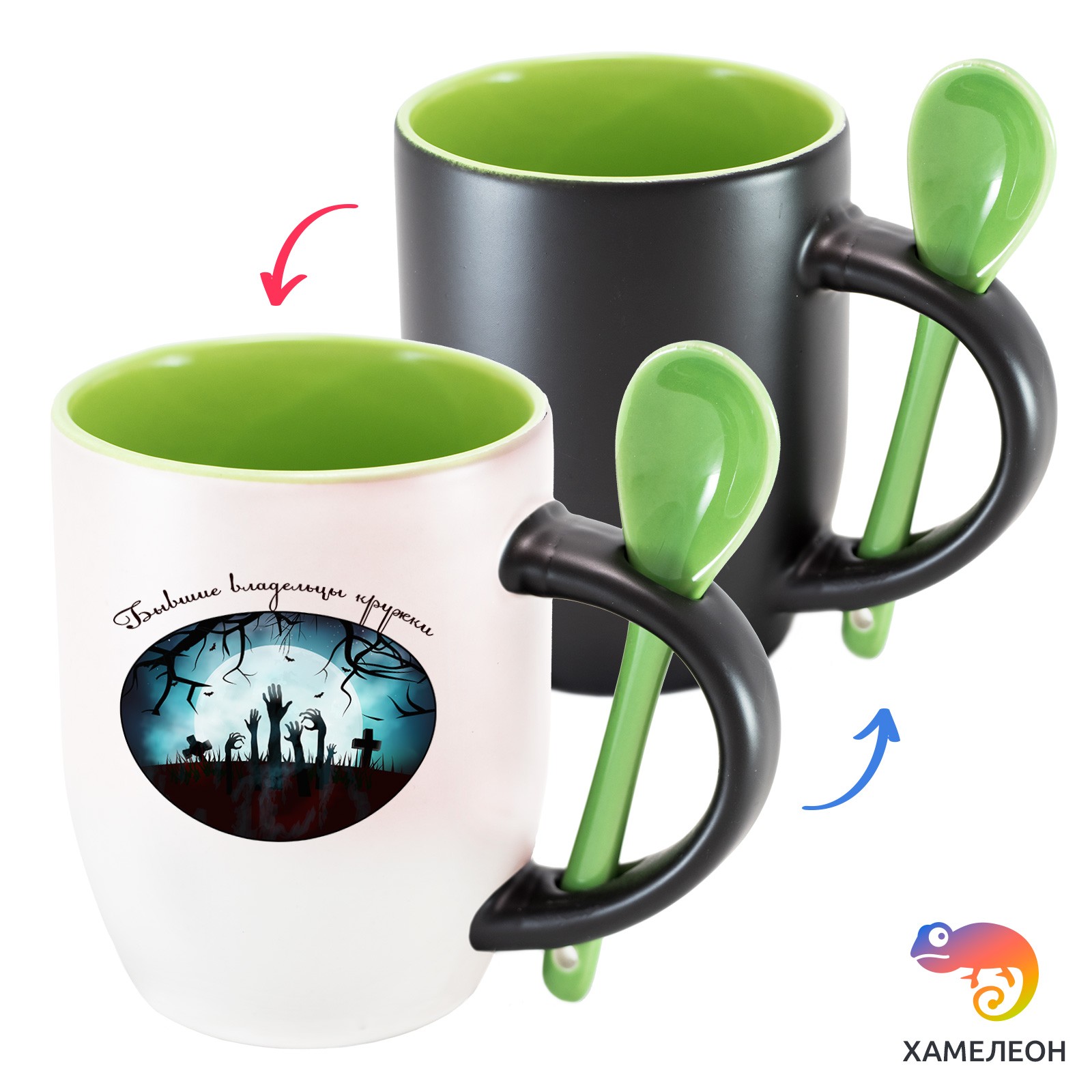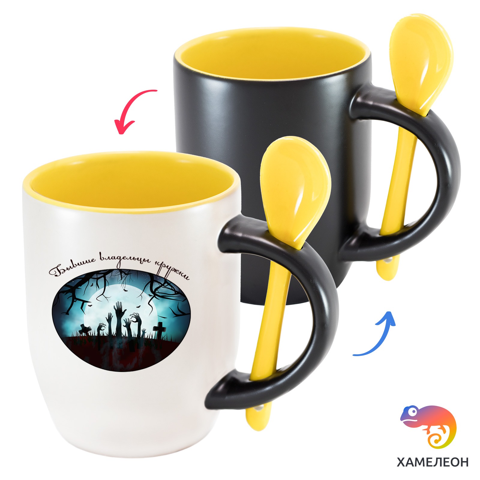 Кружка с принтом является отличным подарком коллеге, другу или самому себе ?Оригинальная кружка хамелеон «Бывшие владельцы кружки» с ложкой приукрасит ваши будни или станет отличным подарком. Кружка изготовлена из высококачественной керамики, а специальный термопегментный слой позволяет ей менять цвет, в зависимости от температуры. Изначально кружка имеет черную заливку, которая становится белой, когда вы наливаете кипяток. Термопегменты становятся прозрачными, начиная с 50°C. Под черным пегментным слоем скрываются необычные рисунки, которые удивят многих.