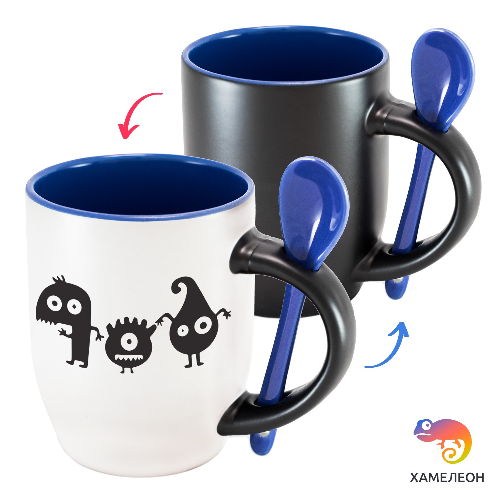Кружка с принтом является отличным подарком коллеге, другу или самому себе ?Оригинальная кружка хамелеон «Чудики» с ложкой приукрасит ваши будни или станет отличным подарком. Кружка изготовлена из высококачественной керамики, а специальный термопегментный слой позволяет ей менять цвет, в зависимости от температуры. Изначально кружка имеет черную заливку, которая становится белой, когда вы наливаете кипяток. Термопегменты становятся прозрачными, начиная с 50°C. Под черным пегментным слоем скрываются необычные рисунки, которые удивят многих.