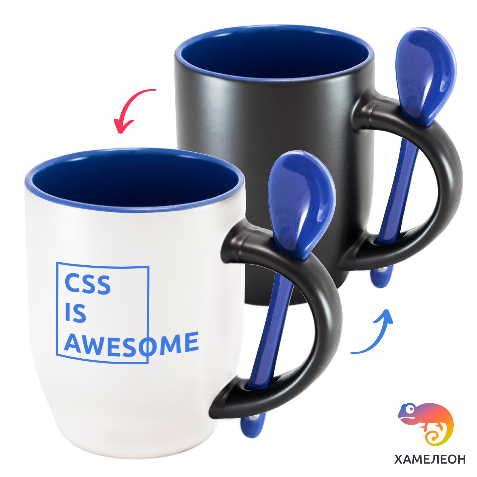Кружка с принтом является отличным подарком коллеге, другу или самому себе ?Оригинальная кружка хамелеон CSS is Awesome с ложкой приукрасит ваши будни или станет отличным подарком. Кружка изготовлена из высококачественной керамики, а специальный термопегментный слой позволяет ей менять цвет, в зависимости от температуры. Изначально кружка имеет черную заливку, которая становится белой, когда вы наливаете кипяток. Термопегменты становятся прозрачными, начиная с 50°C. Под черным пегментным слоем скрываются необычные рисунки, которые удивят многих.