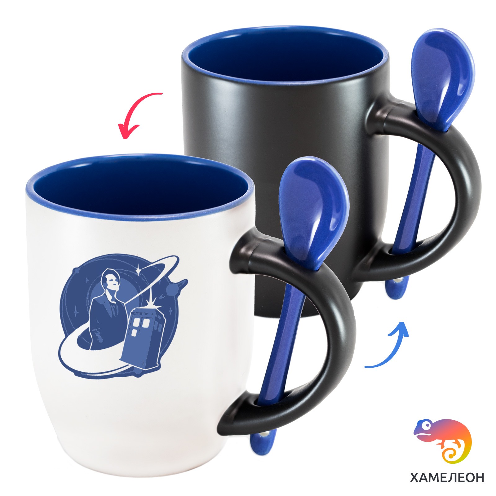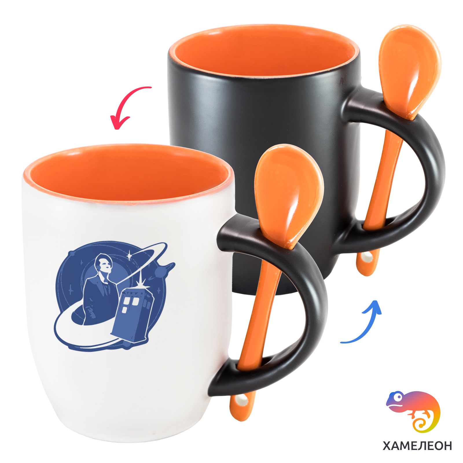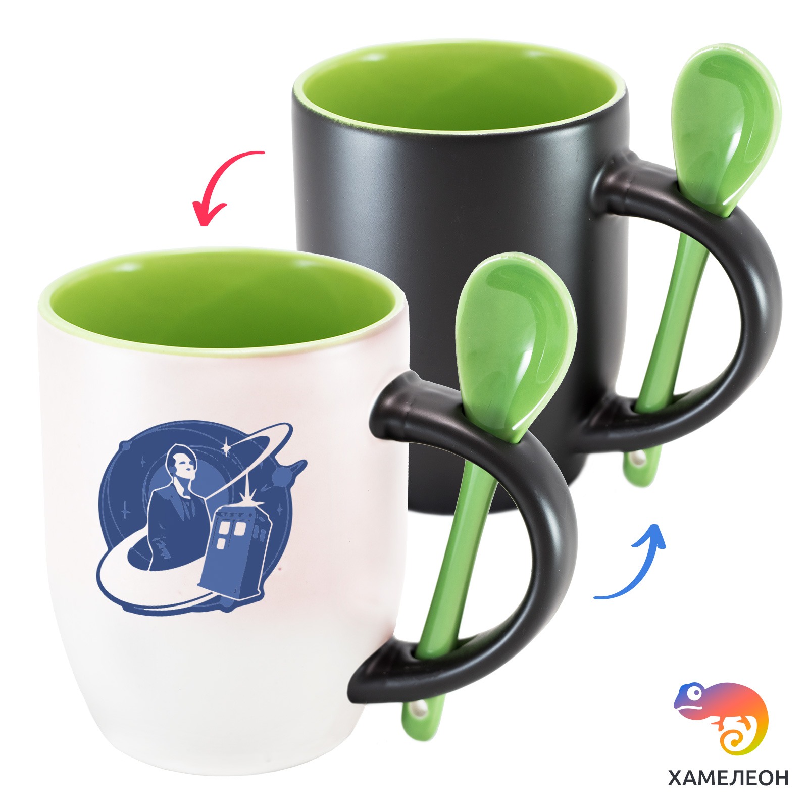 Кружка с принтом является отличным подарком коллеге, другу или самому себе ?Оригинальная кружка хамелеон «Доктор Кто» ложкой приукрасит ваши будни или станет отличным подарком. Кружка изготовлена из высококачественной керамики, а специальный термопегментный слой позволяет ей менять цвет, в зависимости от температуры. Изначально кружка имеет черную заливку, которая становится белой, когда вы наливаете кипяток. Термопегменты становятся прозрачными, начиная с 50°C. Под черным пегментным слоем скрываются необычные рисунки, которые удивят многих.