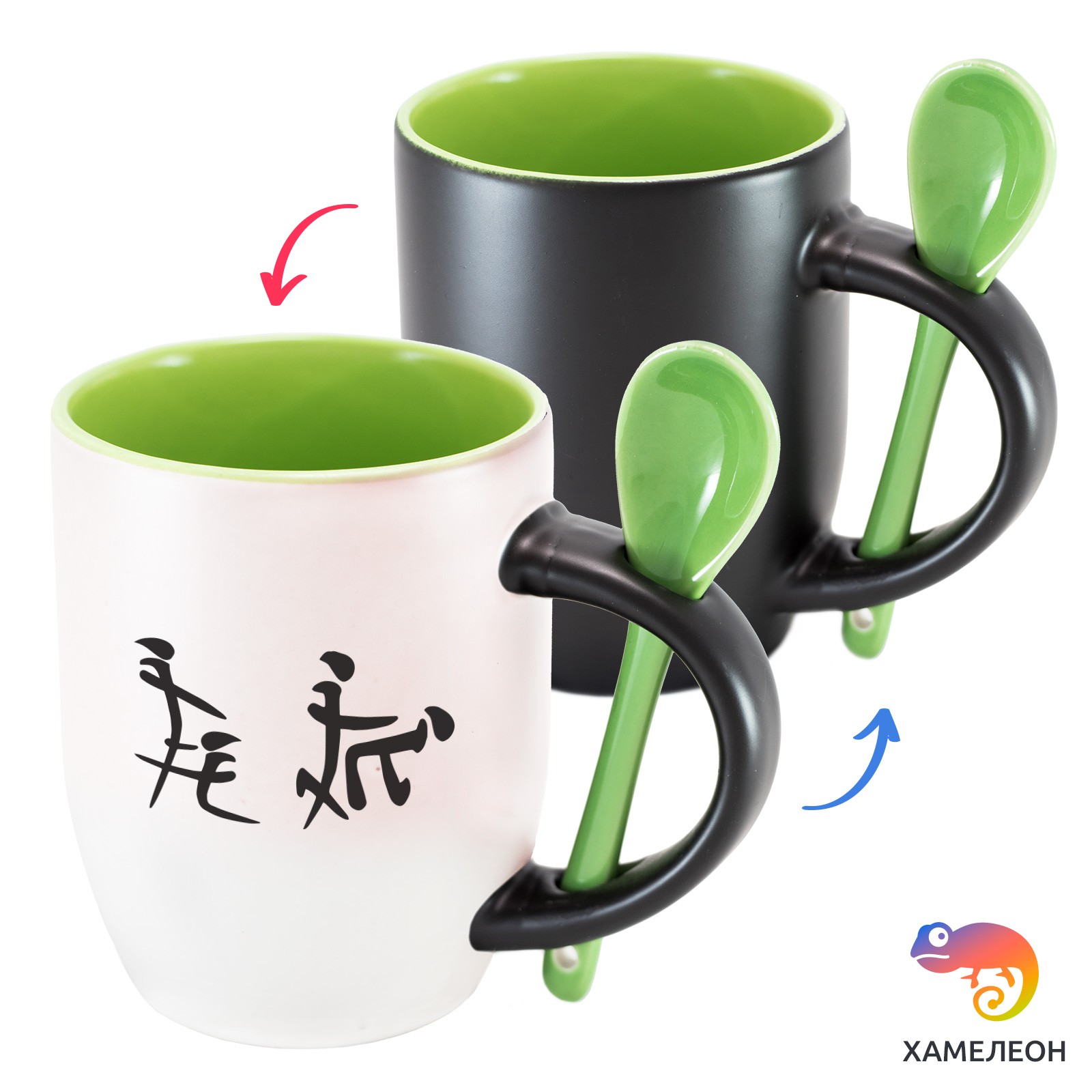 Кружка с принтом является отличным подарком коллеге, другу или самому себе ?Оригинальная кружка хамелеон «Факероглифы» с ложкой приукрасит ваши будни или станет отличным подарком. Кружка изготовлена из высококачественной керамики, а специальный термопегментный слой позволяет ей менять цвет, в зависимости от температуры. Изначально кружка имеет черную заливку, которая становится белой, когда вы наливаете кипяток. Термопегменты становятся прозрачными, начиная с 50°C. Под черным пегментным слоем скрываются необычные рисунки, которые удивят многих.
