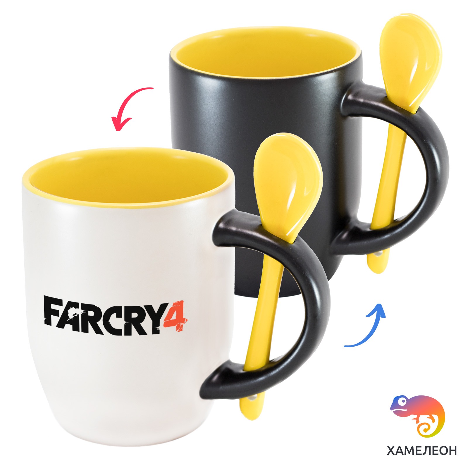 Кружка с принтом является отличным подарком коллеге, другу или самому себе ?Оригинальная кружка хамелеон FarCry 4 с ложкой приукрасит ваши будни или станет отличным подарком. Кружка изготовлена из высококачественной керамики, а специальный термопегментный слой позволяет ей менять цвет, в зависимости от температуры. Изначально кружка имеет черную заливку, которая становится белой, когда вы наливаете кипяток. Термопегменты становятся прозрачными, начиная с 50°C. Под черным пегментным слоем скрываются необычные рисунки, которые удивят многих.