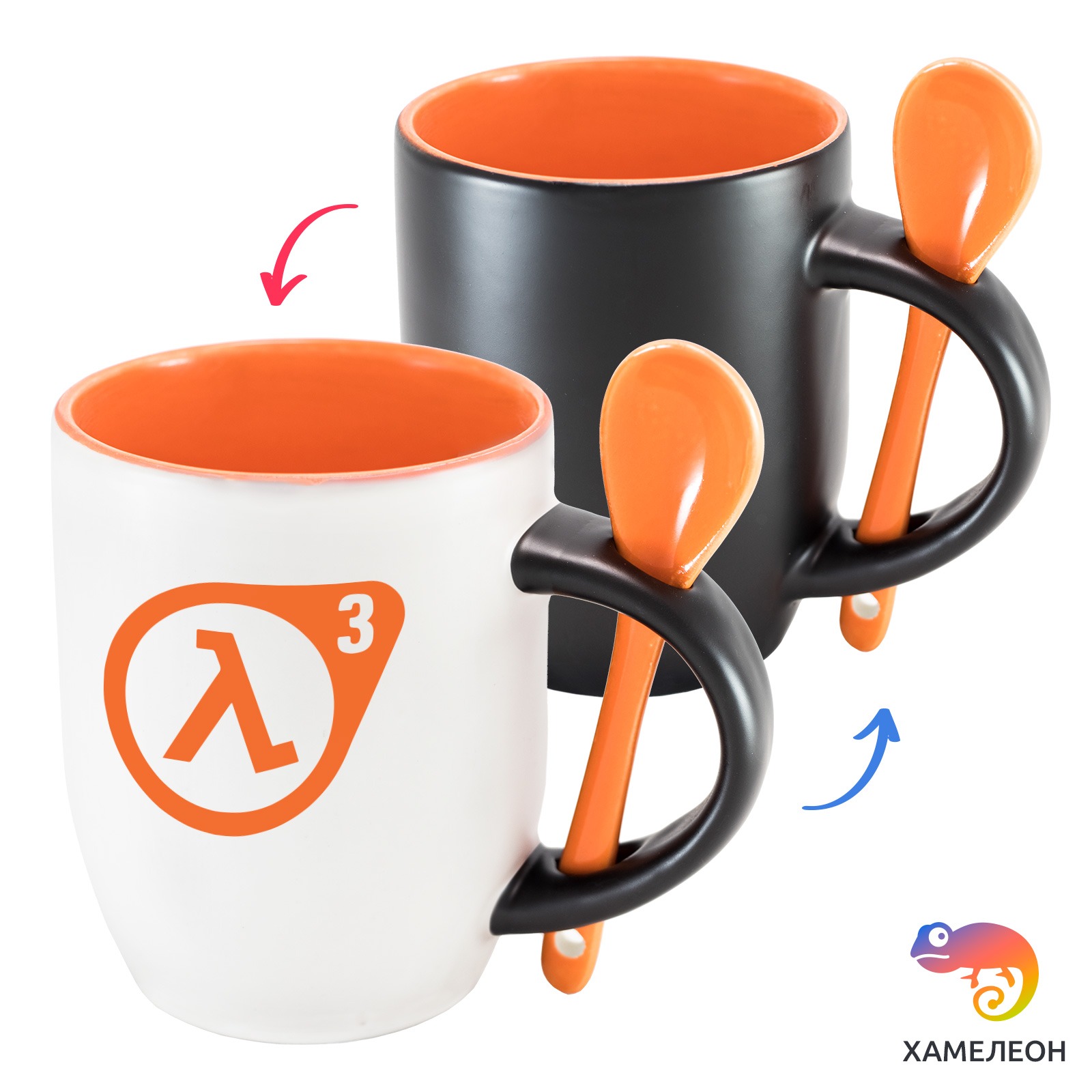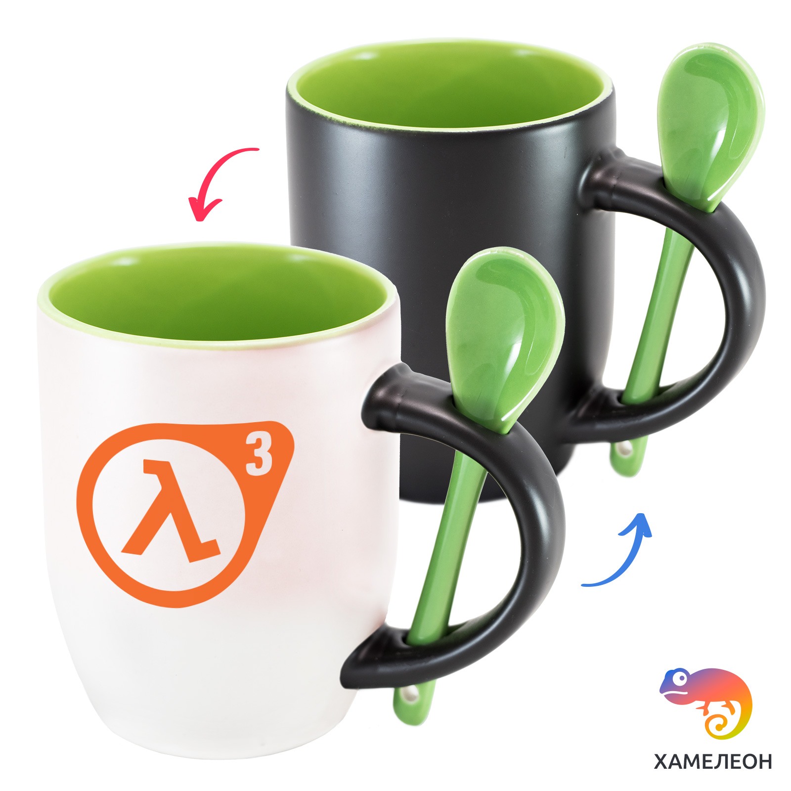 Кружка с принтом является отличным подарком коллеге, другу или самому себе ?Оригинальная кружка хамелеон Half-Life 3 с ложкой приукрасит ваши будни или станет отличным подарком. Кружка изготовлена из высококачественной керамики, а специальный термопегментный слой позволяет ей менять цвет, в зависимости от температуры. Изначально кружка имеет черную заливку, которая становится белой, когда вы наливаете кипяток. Термопегменты становятся прозрачными, начиная с 50°C. Под черным пегментным слоем скрываются необычные рисунки, которые удивят многих.