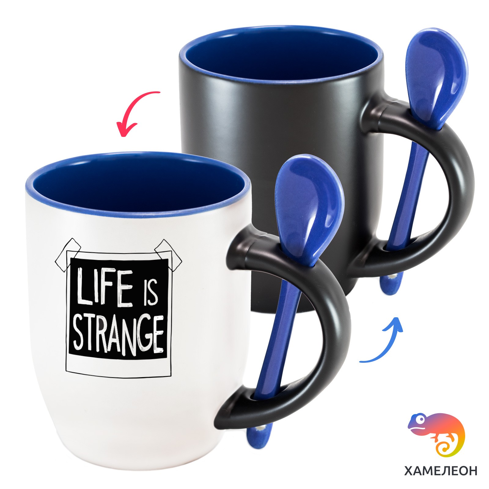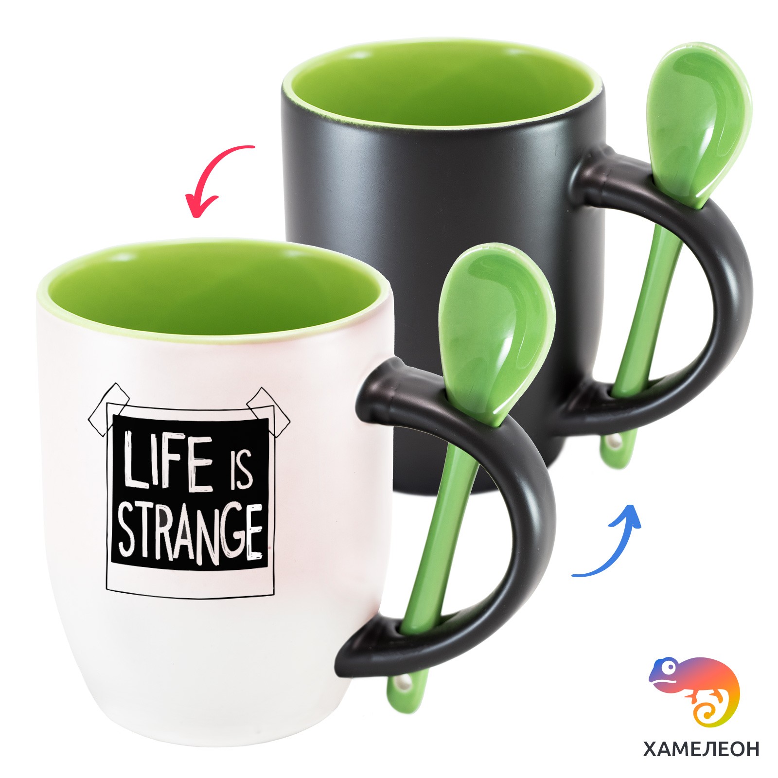 Кружка с принтом является отличным подарком коллеге, другу или самому себе ?Оригинальная кружка хамелеон Life is Strange ложкой приукрасит ваши будни или станет отличным подарком. Кружка изготовлена из высококачественной керамики, а специальный термопегментный слой позволяет ей менять цвет, в зависимости от температуры. Изначально кружка имеет черную заливку, которая становится белой, когда вы наливаете кипяток. Термопегменты становятся прозрачными, начиная с 50°C. Под черным пегментным слоем скрываются необычные рисунки, которые удивят многих.