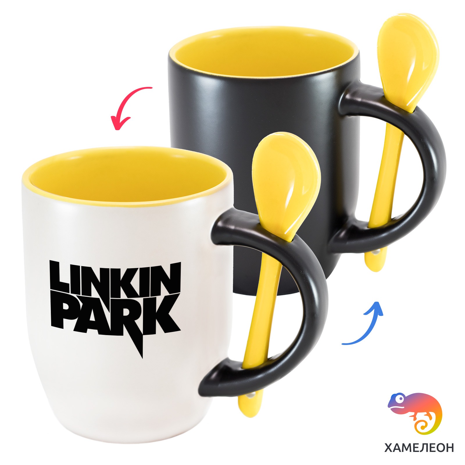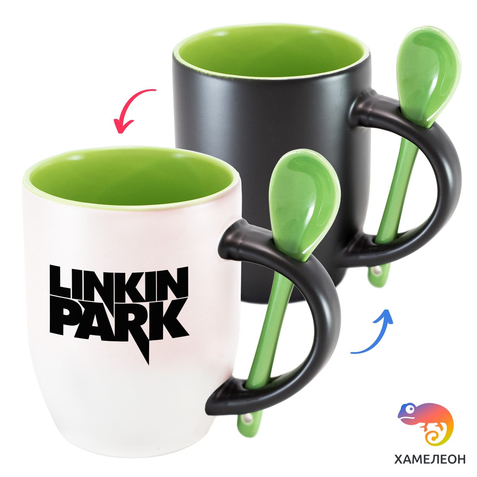 Кружка с принтом является отличным подарком коллеге, другу или самому себе ?Оригинальная кружка хамелеон Linkin Park с ложкой приукрасит ваши будни или станет отличным подарком. Кружка изготовлена из высококачественной керамики, а специальный термопегментный слой позволяет ей менять цвет, в зависимости от температуры. Изначально кружка имеет черную заливку, которая становится белой, когда вы наливаете кипяток. Термопегменты становятся прозрачными, начиная с 50°C. Под черным пегментным слоем скрываются необычные рисунки, которые удивят многих.