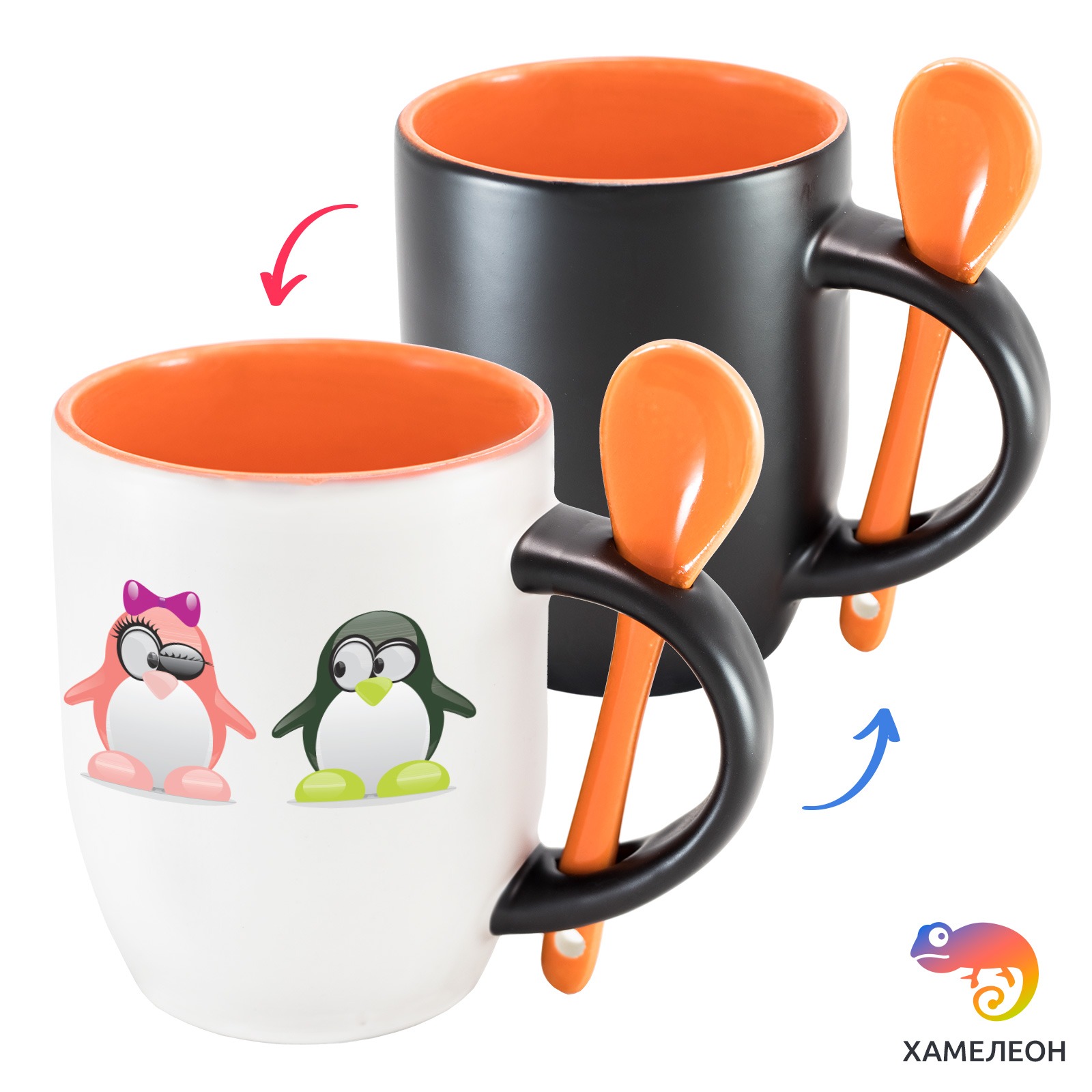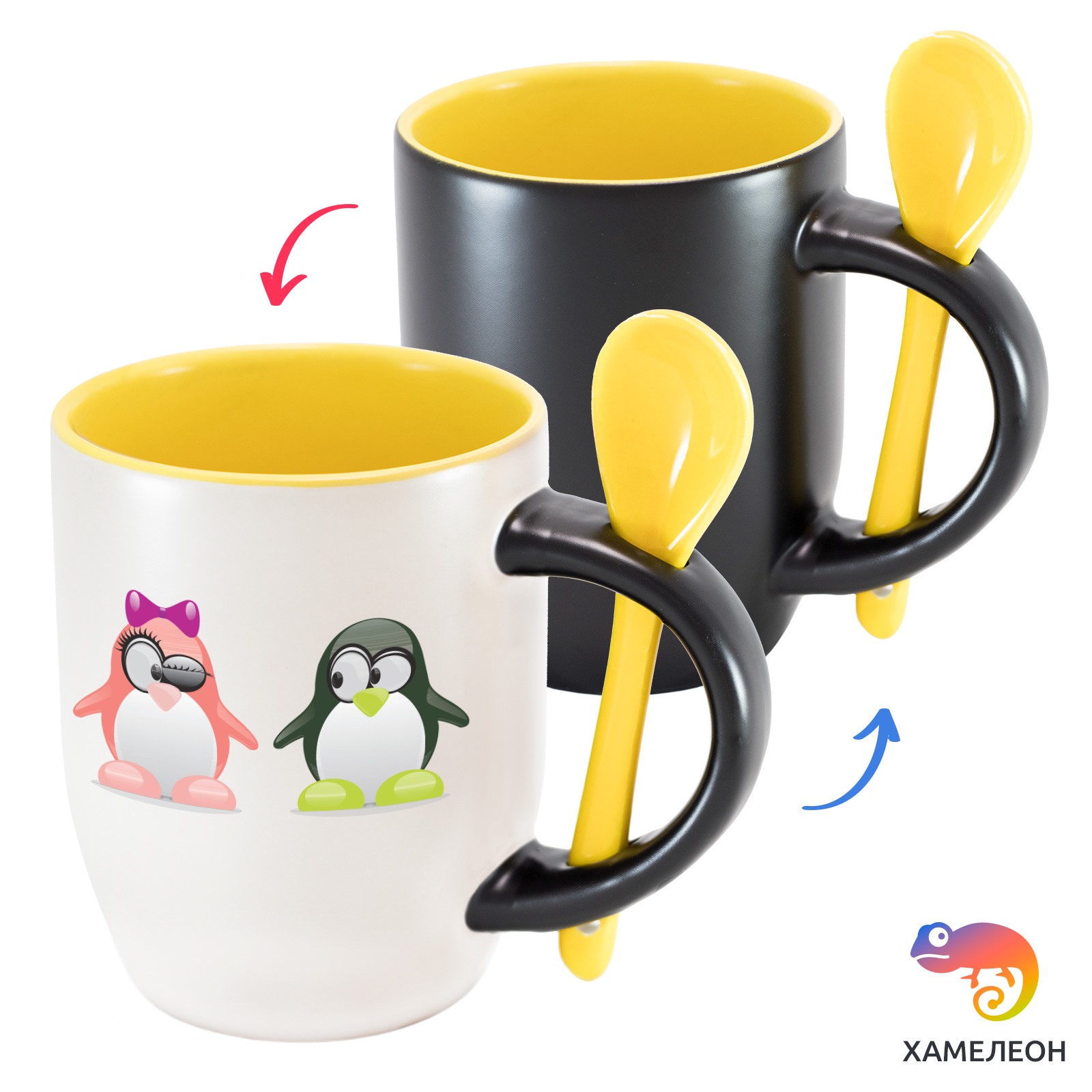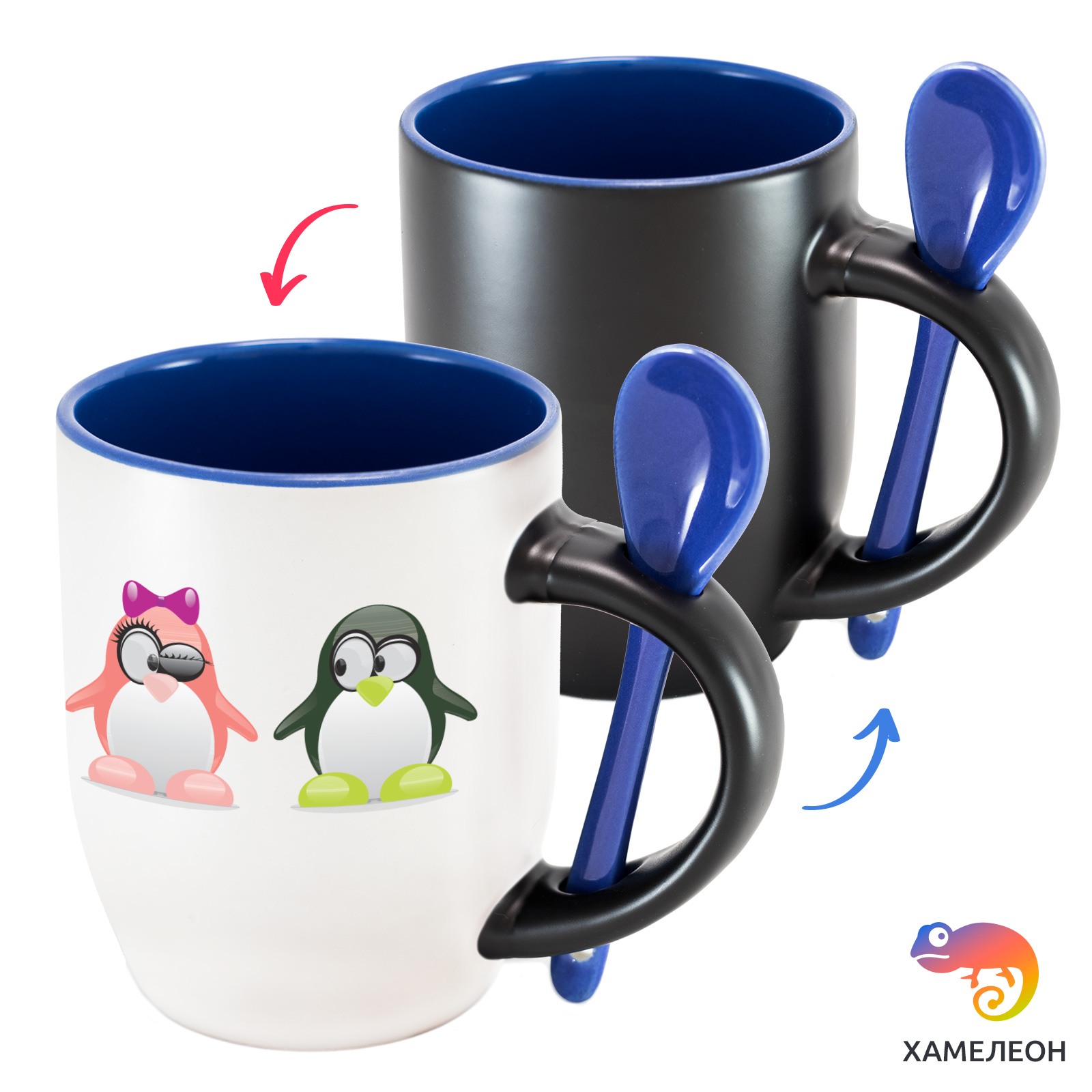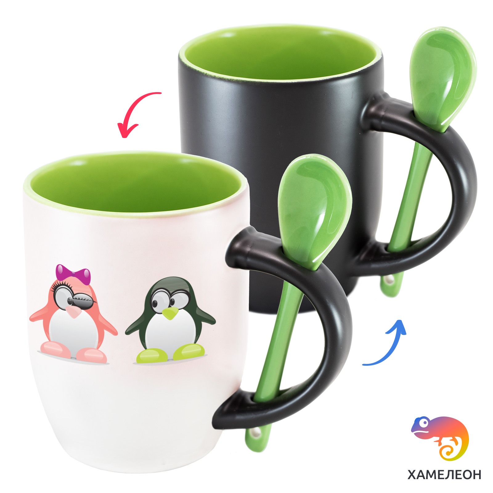 Кружка с принтом является отличным подарком коллеге, другу или самому себе ?Оригинальная кружка хамелеон «Линуксянская любовь» с ложкой приукрасит ваши будни или станет отличным подарком. Кружка изготовлена из высококачественной керамики, а специальный термопегментный слой позволяет ей менять цвет, в зависимости от температуры. Изначально кружка имеет черную заливку, которая становится белой, когда вы наливаете кипяток. Термопегменты становятся прозрачными, начиная с 50°C. Под черным пегментным слоем скрываются необычные рисунки, которые удивят многих.