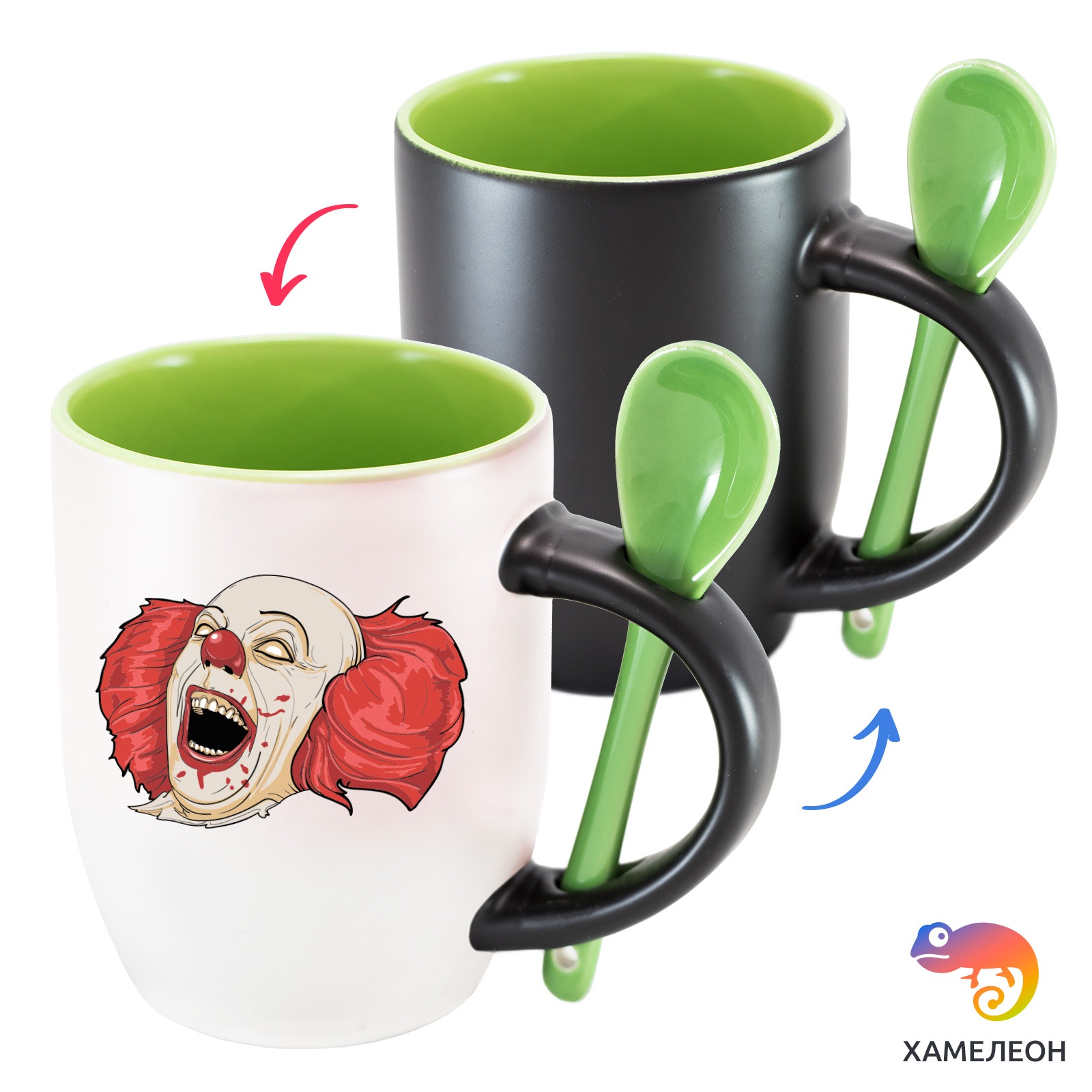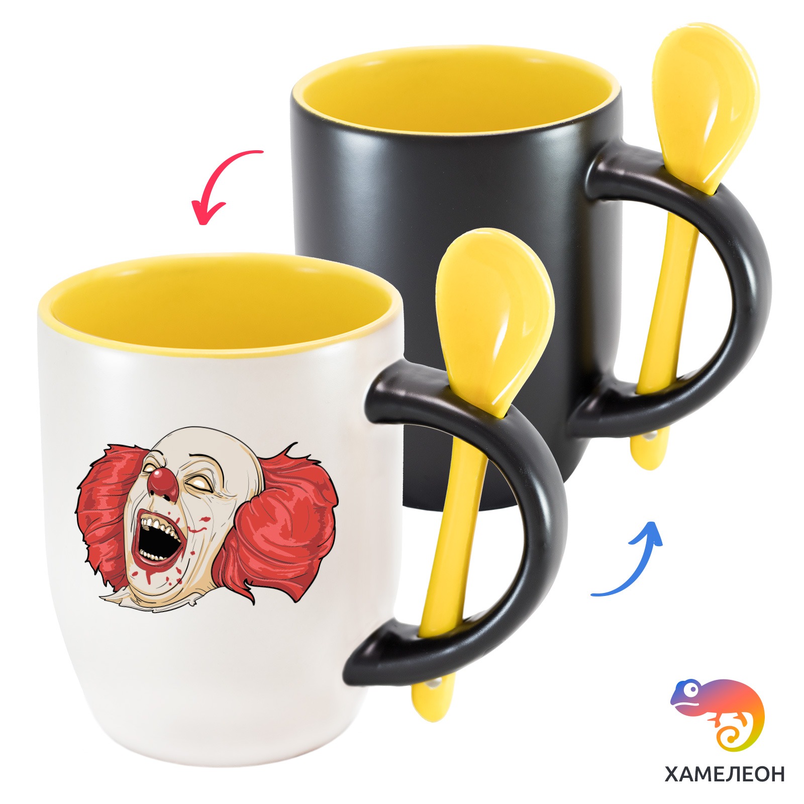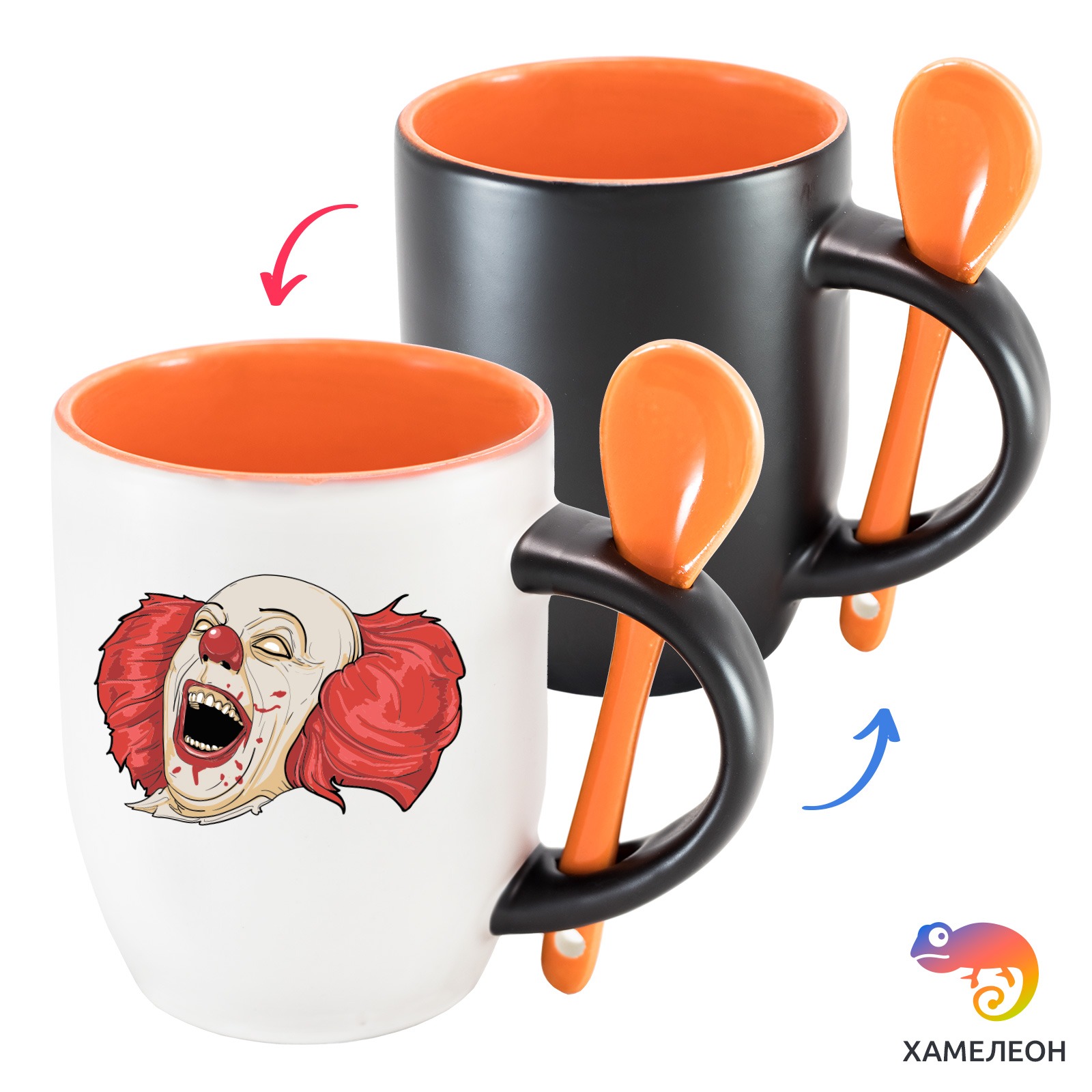 Кружка с принтом является отличным подарком коллеге, другу или самому себе ?Оригинальная кружка хамелеон «Оно» с ложкой приукрасит ваши будни или станет отличным подарком. Кружка изготовлена из высококачественной керамики, а специальный термопегментный слой позволяет ей менять цвет, в зависимости от температуры. Изначально кружка имеет черную заливку, которая становится белой, когда вы наливаете кипяток. Термопегменты становятся прозрачными, начиная с 50°C. Под черным пегментным слоем скрываются необычные рисунки, которые удивят многих.