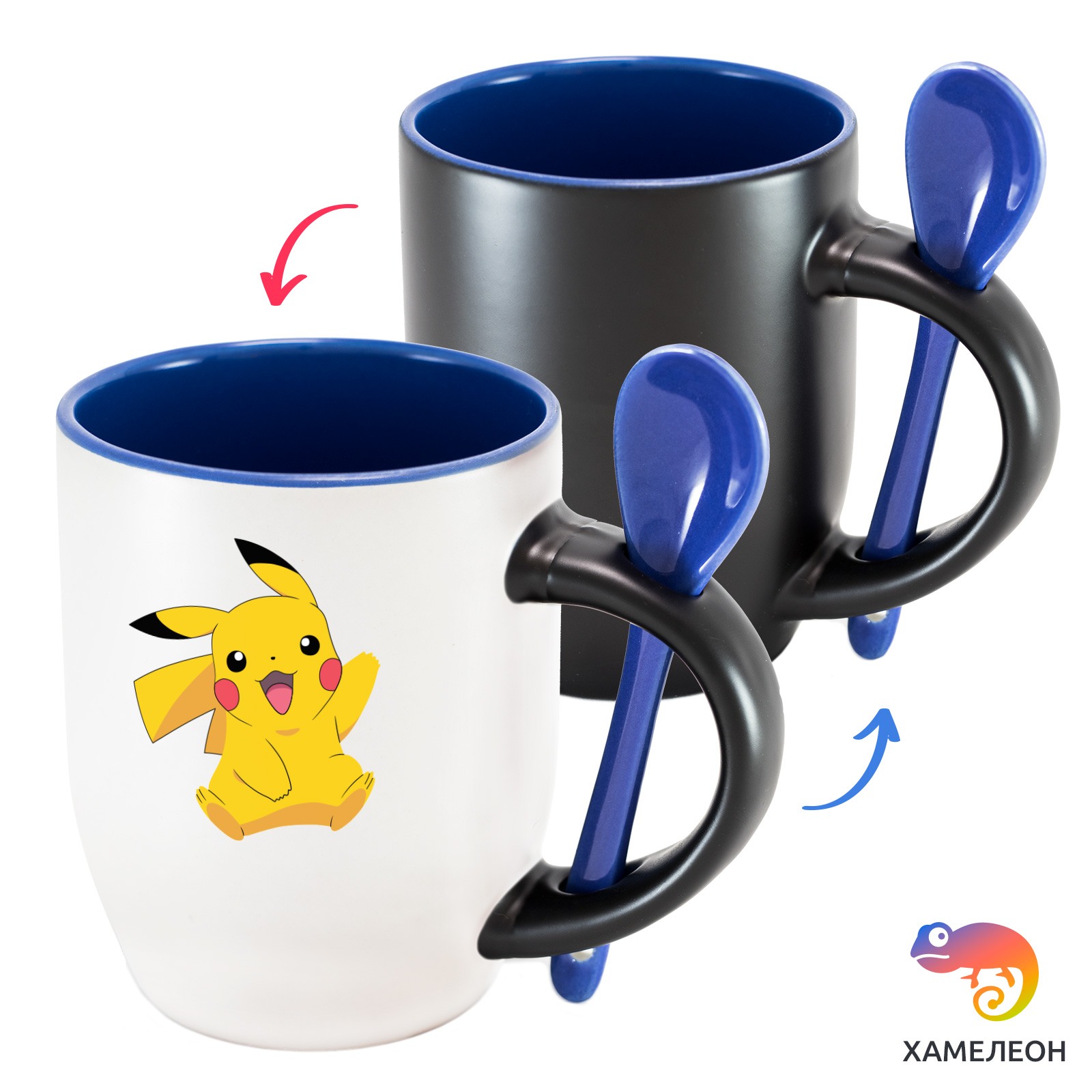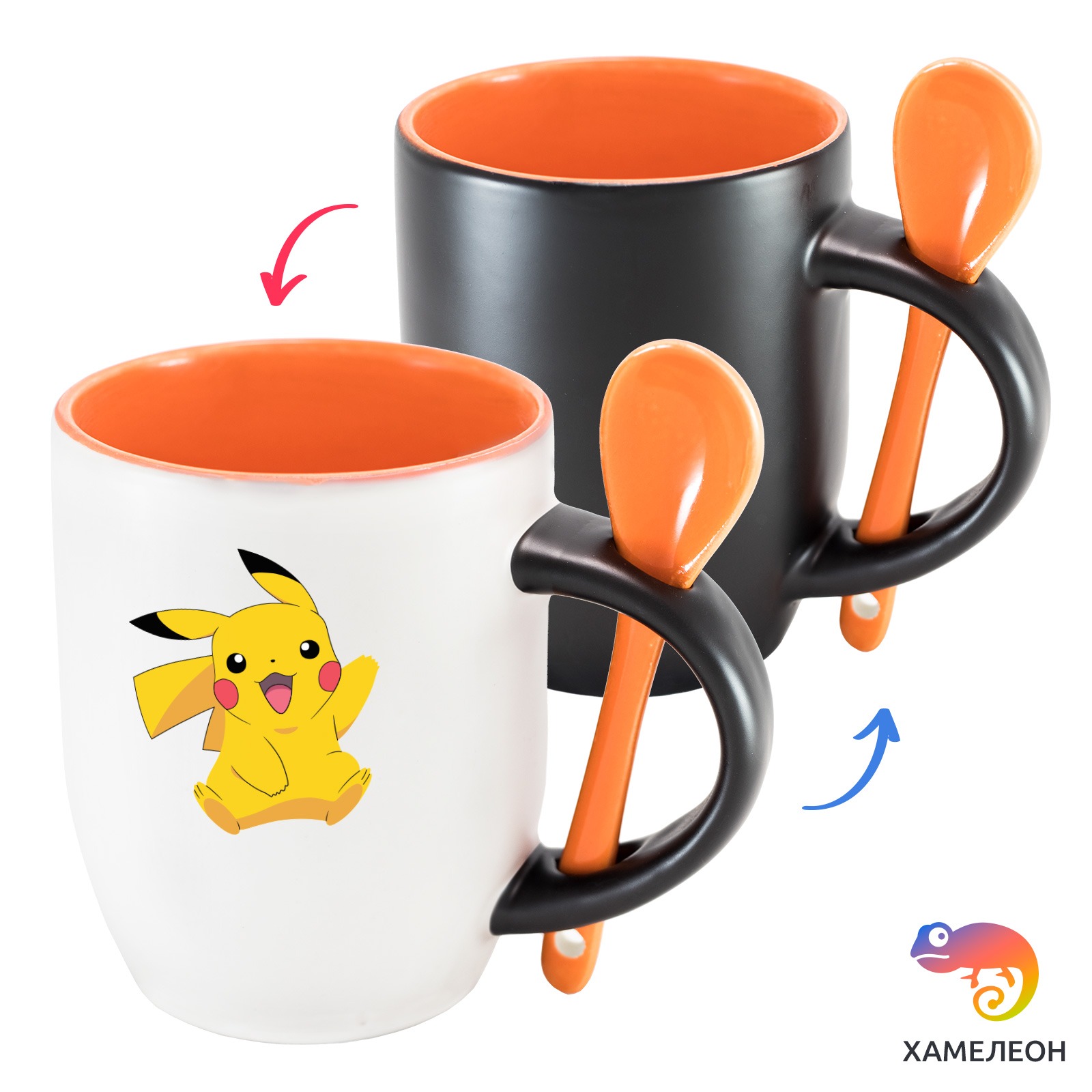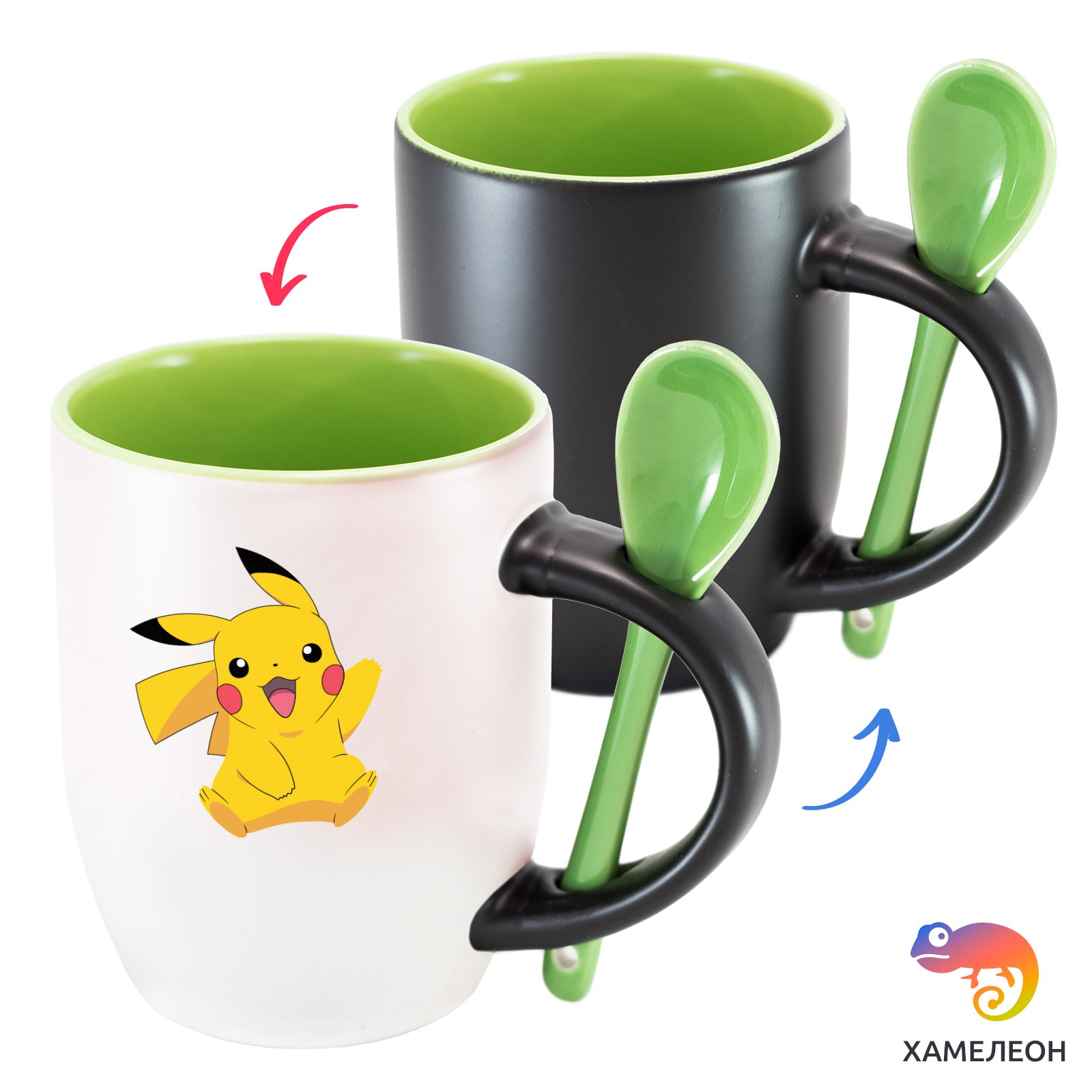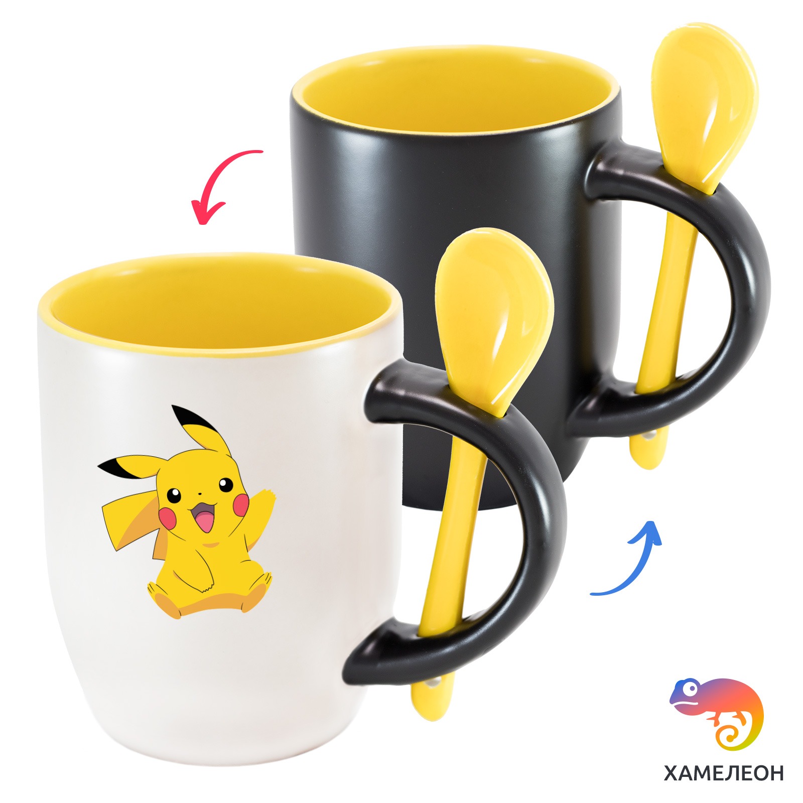 Кружка с принтом является отличным подарком коллеге, другу или самому себе ?Оригинальная кружка хамелеон Pikachu с ложкой приукрасит ваши будни или станет отличным подарком. Кружка изготовлена из высококачественной керамики, а специальный термопегментный слой позволяет ей менять цвет, в зависимости от температуры. Изначально кружка имеет черную заливку, которая становится белой, когда вы наливаете кипяток. Термопегменты становятся прозрачными, начиная с 50°C. Под черным пегментным слоем скрываются необычные рисунки, которые удивят многих.