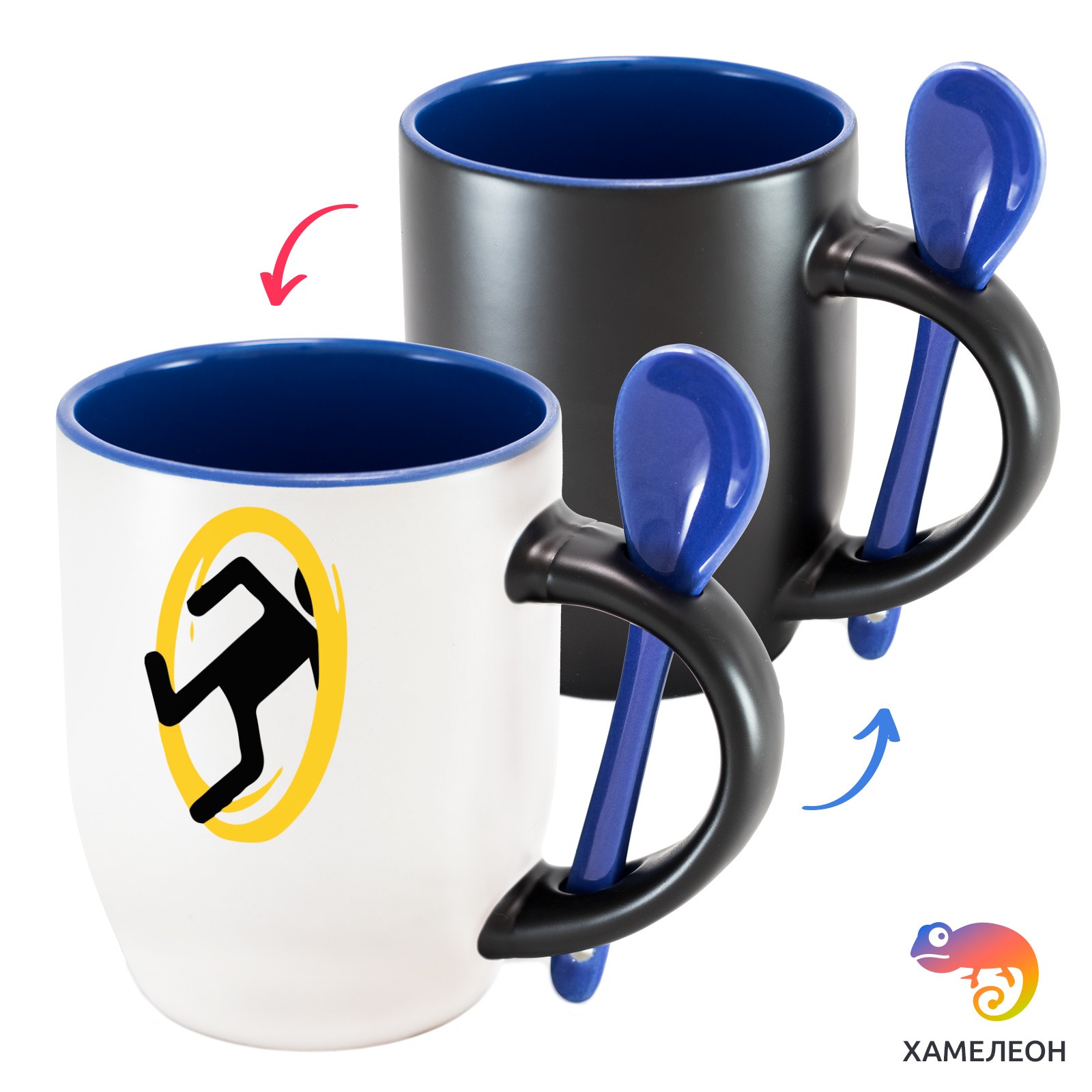 Кружка с принтом является отличным подарком коллеге, другу или самому себе ?Оригинальная кружка хамелеон Portal с ложкой приукрасит ваши будни или станет отличным подарком. Кружка изготовлена из высококачественной керамики, а специальный термопегментный слой позволяет ей менять цвет, в зависимости от температуры. Изначально кружка имеет черную заливку, которая становится белой, когда вы наливаете кипяток. Термопегменты становятся прозрачными, начиная с 50°C. Под черным пегментным слоем скрываются необычные рисунки, которые удивят многих. Рисунок распологается с обеих сторон кружки. С одной стороны вход в портал, с другой выход.